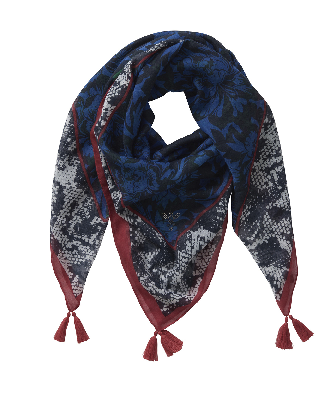 Шейный платок абсолютно необходим в женском гардеробе! Модный змеиный принт, декор стразами придает нотку гламура. Легкий платок прекрасно подойдет к весенне-осеннему гардеробу.