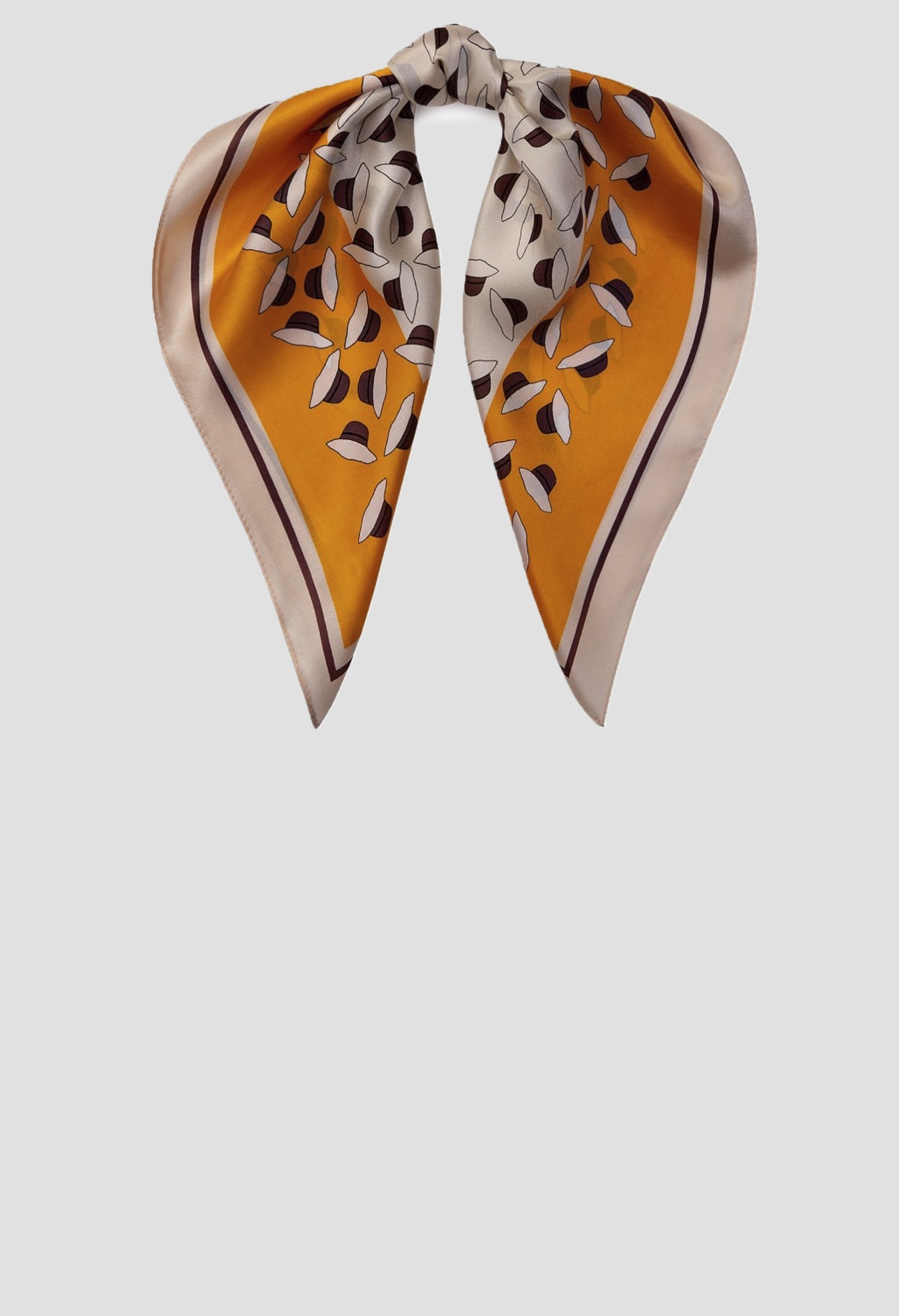 Платок с принтом из 100% шёлка. Тип плетения: Сатин. Размер: 53х53 см. Машинная подгибка.