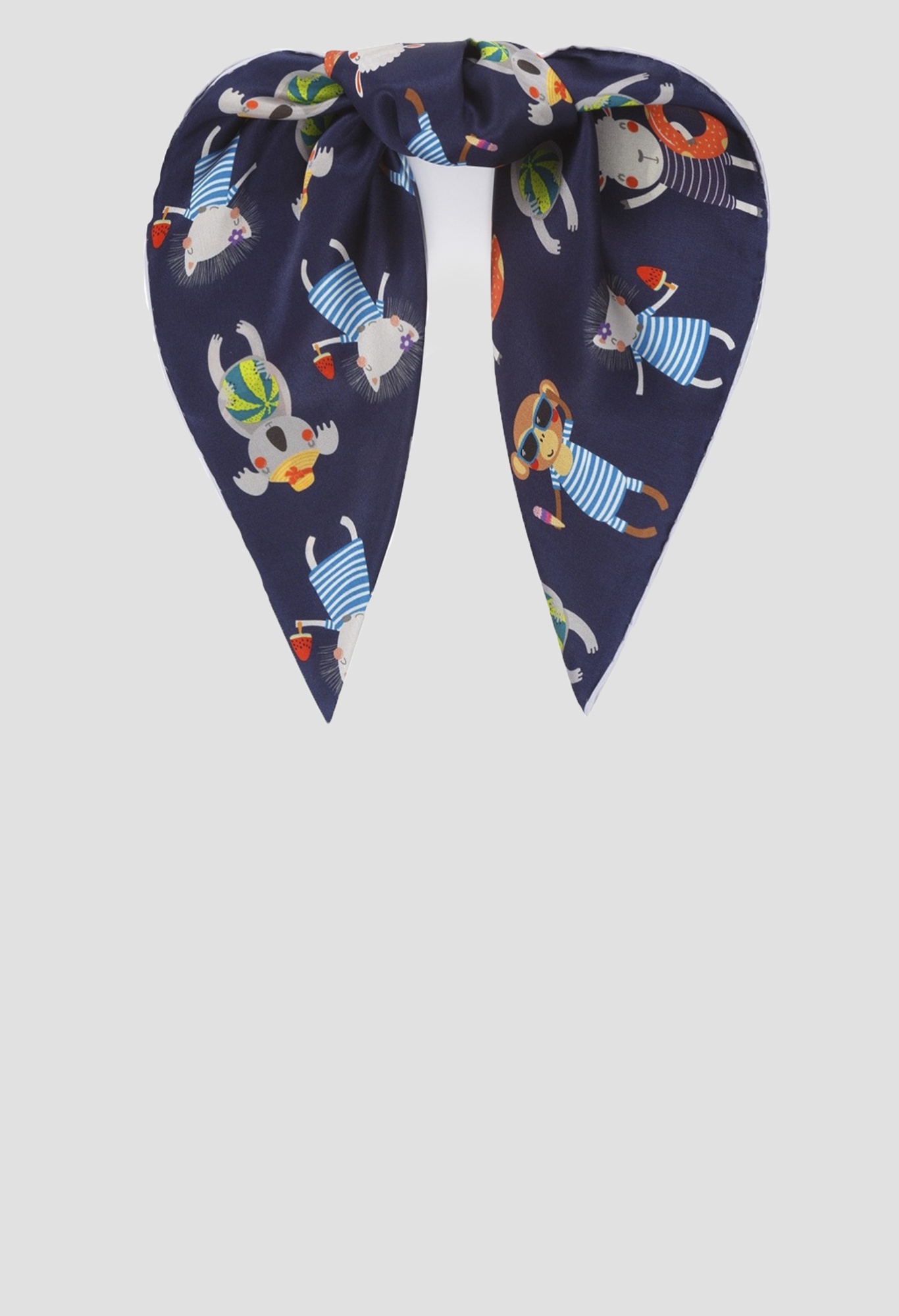 Платок с принтом из 100% шёлка. Тип плетения: Сатин. Размер: 53х53 см. Ручная подгибка.