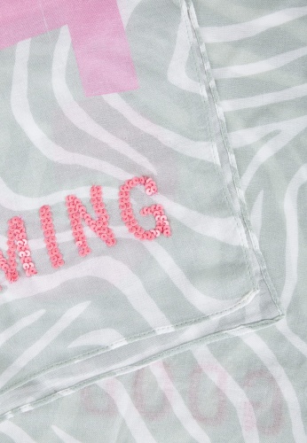 Этот платок из модала с имитацией саржи привлекает внимание своей вышивкой пайетками. Благодаря современному принту под зебру и мягкому ощущению он будет привлекать внимание к любому наряду.