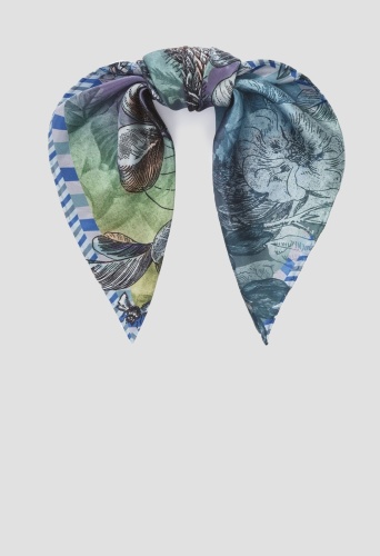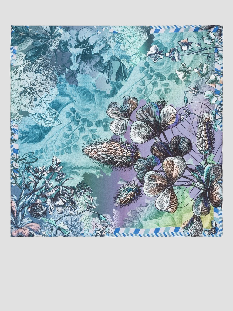 Платок с принтом из 100% шёлка. Тип плетения: Сатин. Размер: 53х53 см. Ручная подгибка.