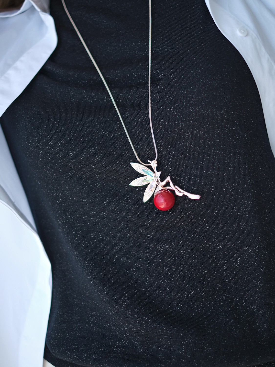 Украшение-подвеска в форме феи подчеркнет нежность и изящество образа. Изделие выполнено из комбинированных материалов с использованием искусственного жемчуга.