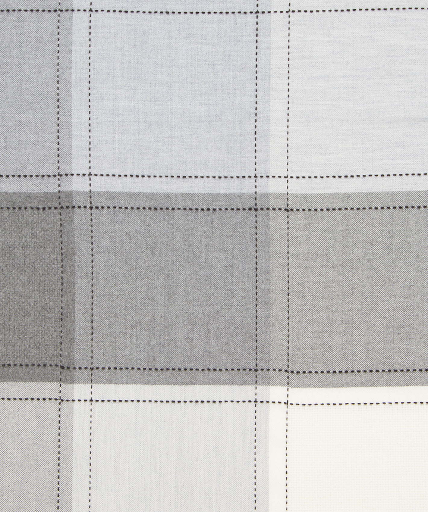 Теплый шарф из приятной на ощупь ткани. Орнамент в крупную клетку белого и серого цветов. Декор - вышивка нитью. Шарф является незаменимой вещью в холодное время года.