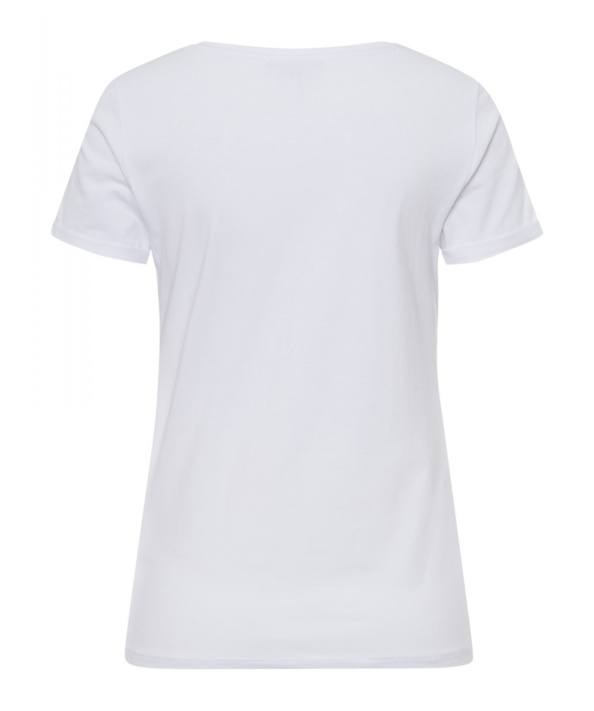 Базовая белая футболка с забавным принтом. Овальный вырез горловины, короткий втачной рукав.