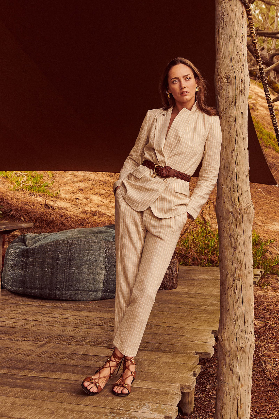 Жакет прямого покроя обязательно должен быть в каждом гардеробе! Отложной воротник с лацканами, застежка на пуговицах. Трендовый принт в полоску. Материал из смеси хлопка и льна приятен к телу и обеспечивает комфорт. Эта модель универсальна и может служить основой как для делового, так и для повседневного образа.