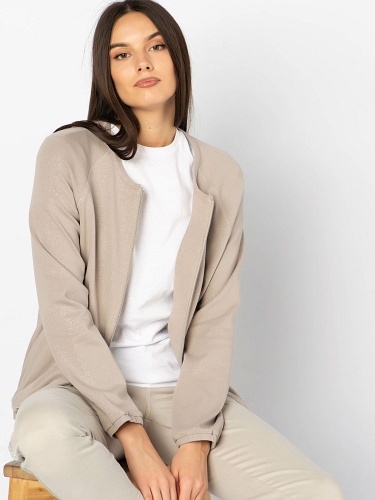 • слегка приталенный силуэт • круглый вырез горловины • длинные рукава реглан • застежка-молния • прорезные карманы • приятный хлопковый материал с примесью эластана • длина изделия по спинке: 65 см.