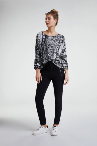 Этот джемпер непременно обратит на себя внимание благодаря необычному принту. Джемпер прямого покроя, горловина-лодочка, длинные рукава. Хлопковый материал приятен к телу и обеспечивает комфорт. В сочетании с лаконичным низом джемпер создает стильный современный образ.