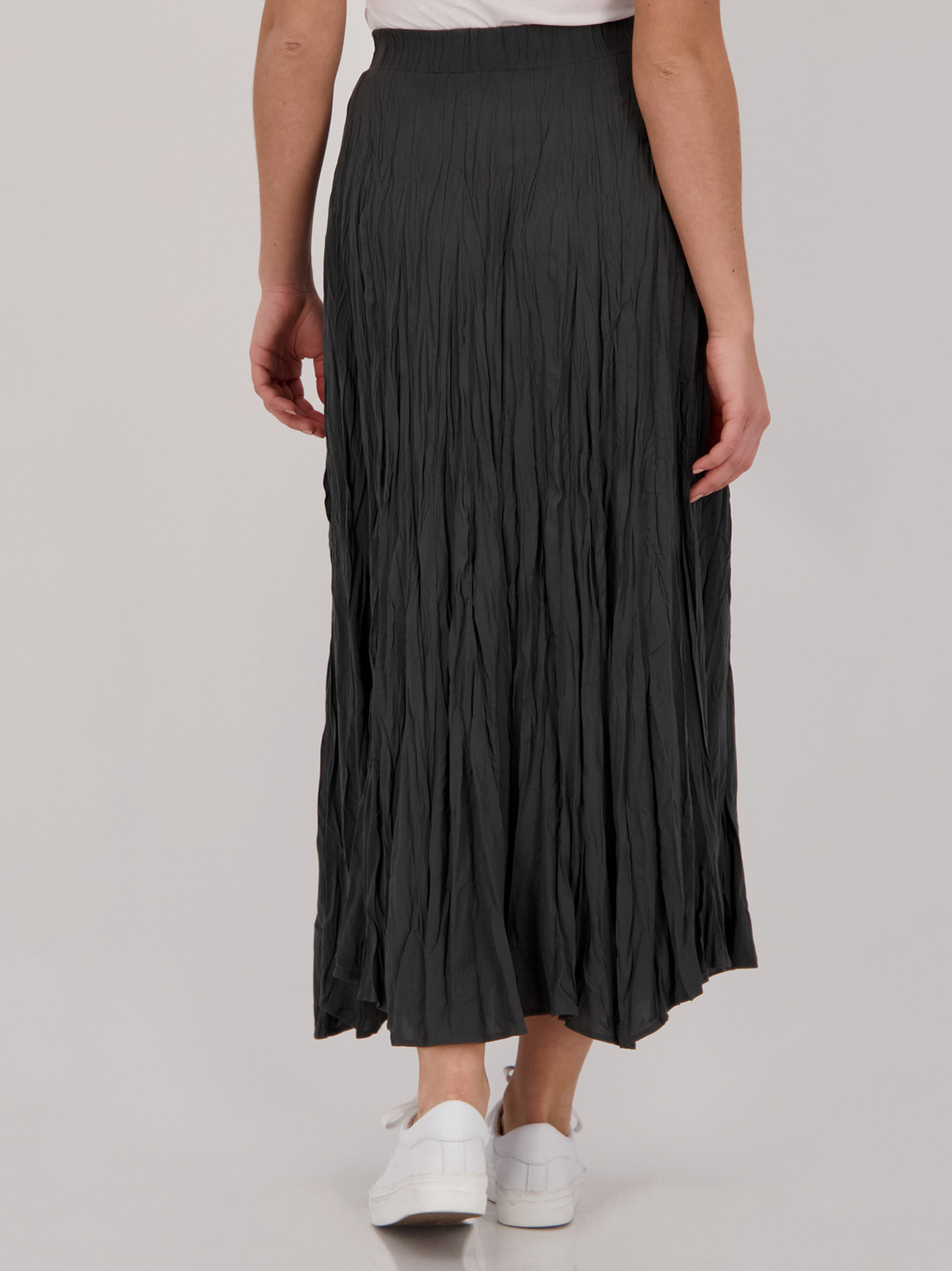 Юбка длины макси выполнена из ткани крэш с эффектом помятости. Эластичный пояс обеспечивает комфортную посадку и удобство ношения. Юбку можно сочетать с топом или футболкой, жакетом, блейзером.