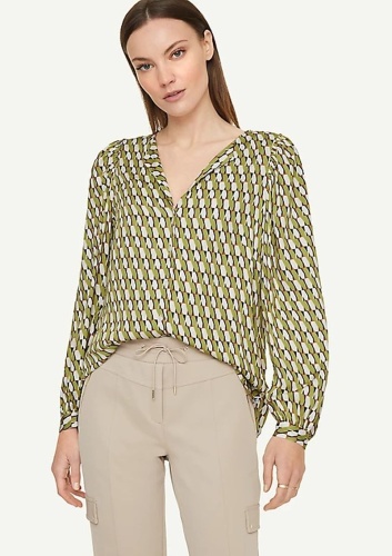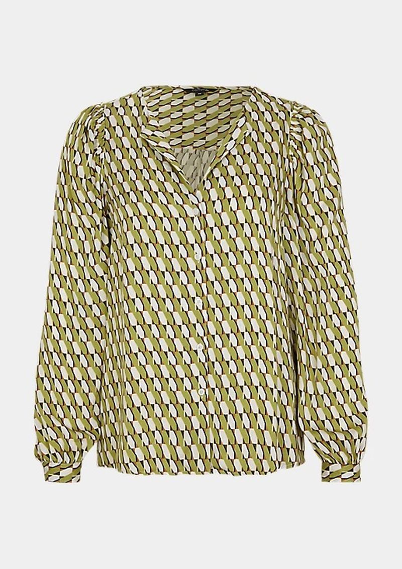 Блузка в геометрическом узоре. Рукав епископа с манжетой. Супатная застежка. Материал из 100% вискозы приятен к телу.