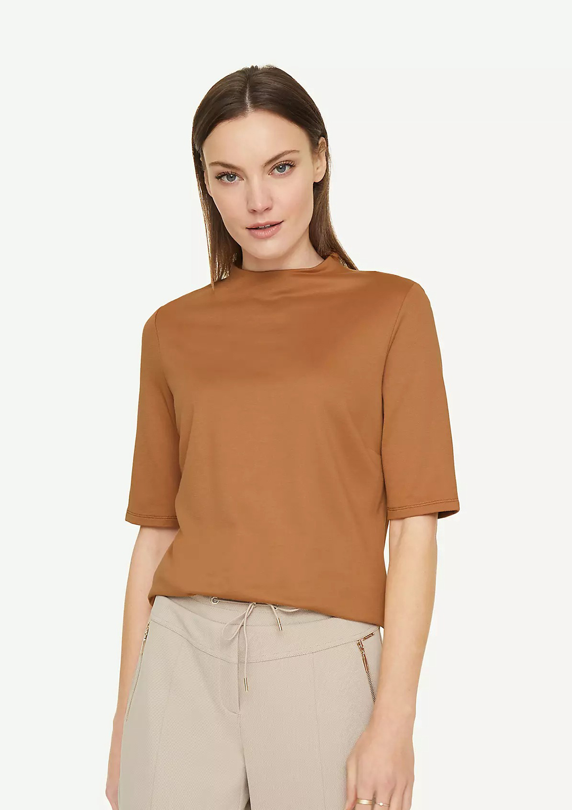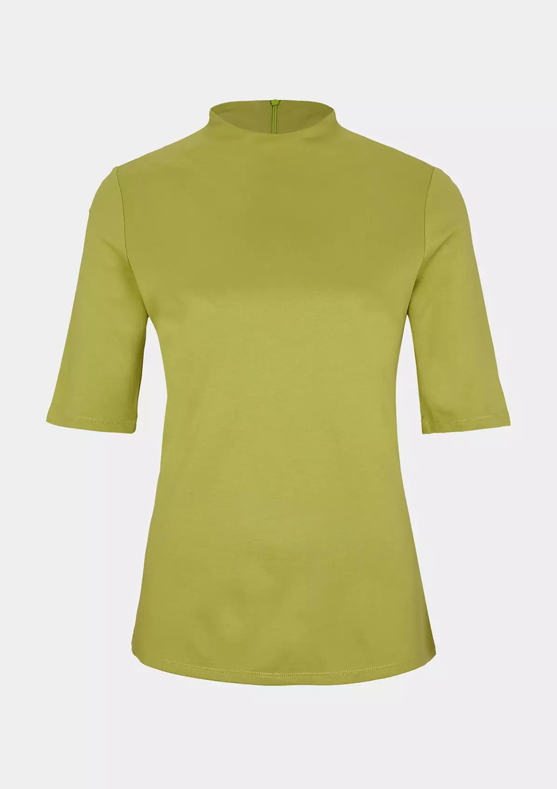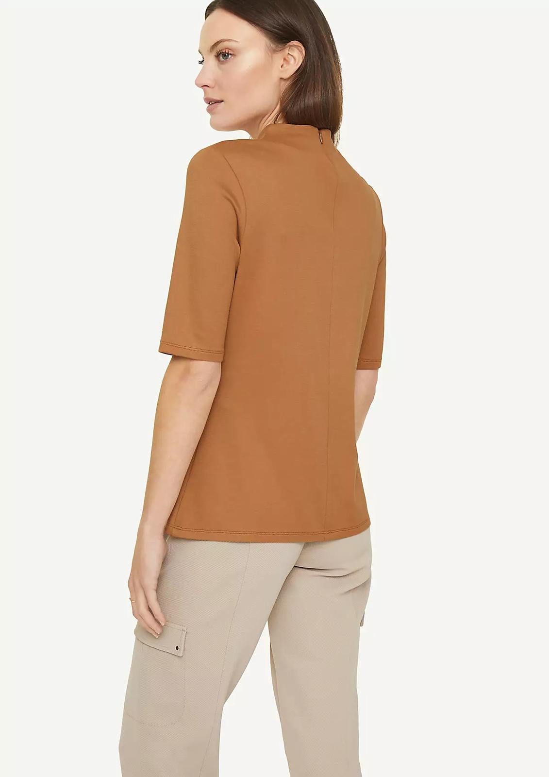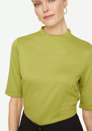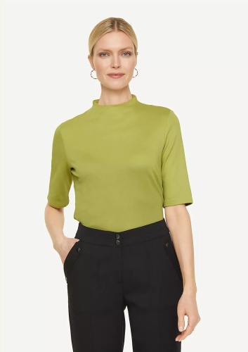 Однотонная блузка прямого кроя. Длина рукава до сгиба локтя, воротник стойка. Блуза может выступать самостоятельным верхом или надеваться под блейзер или жакет.
