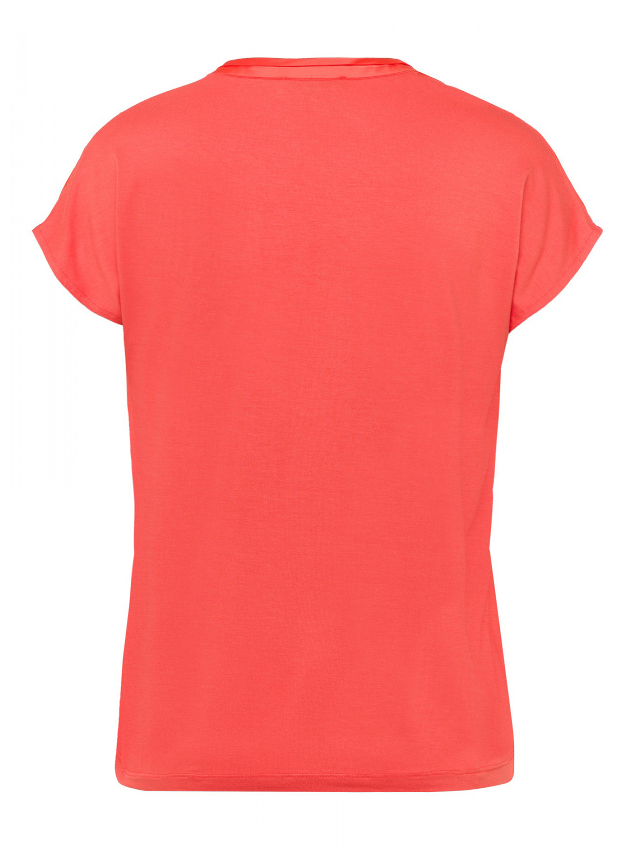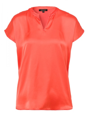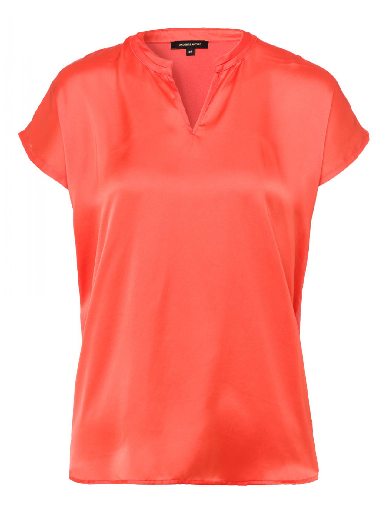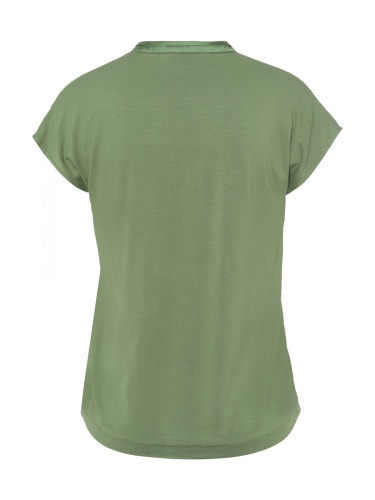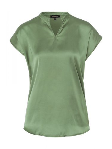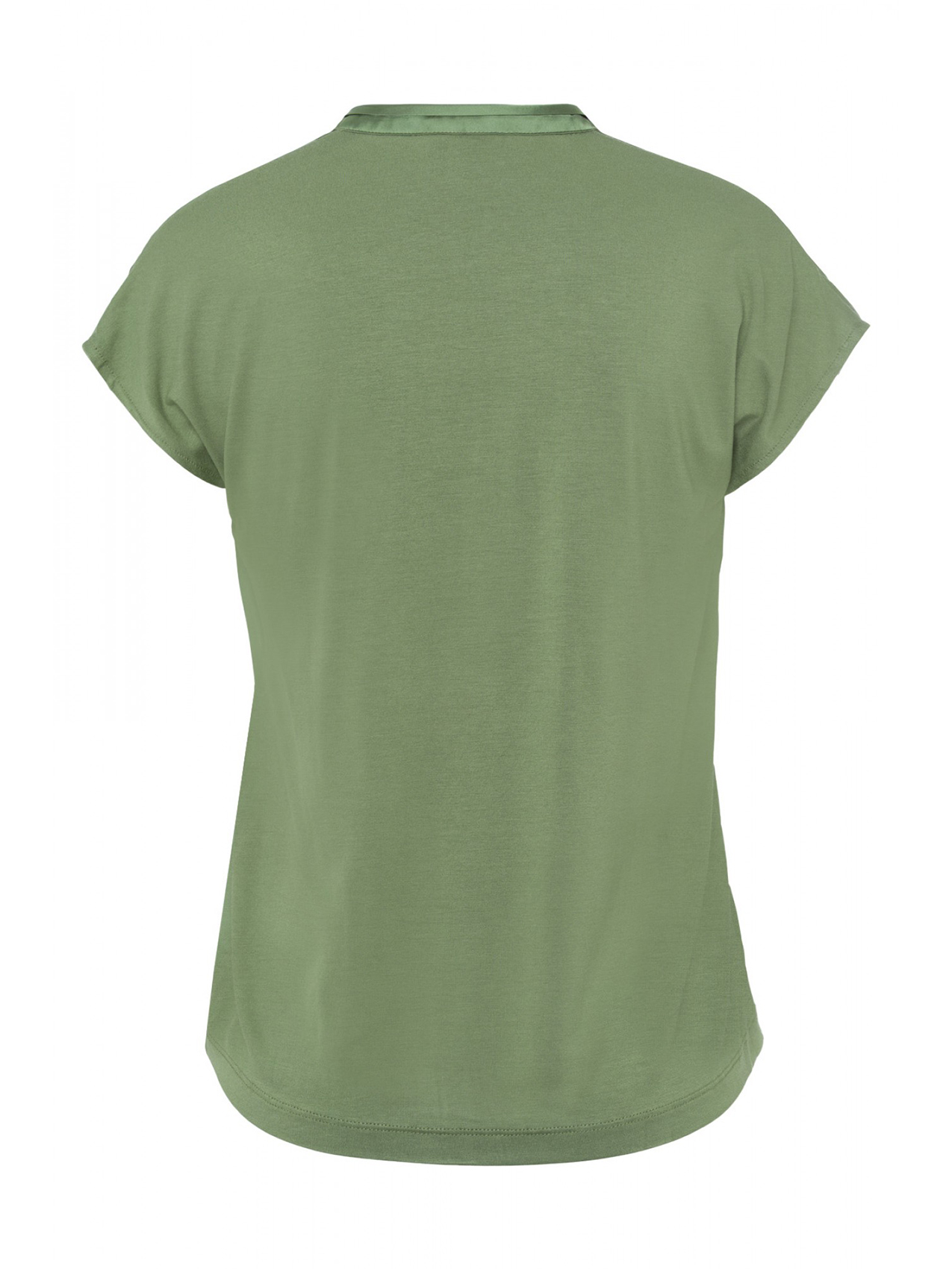 Женственная блузка-рубашка с блестящей атласной передней частью и мягкой трикотажной спинкой. Прямой крой. Короткий цельнокроеный рукав, V-образный вырез горловины.