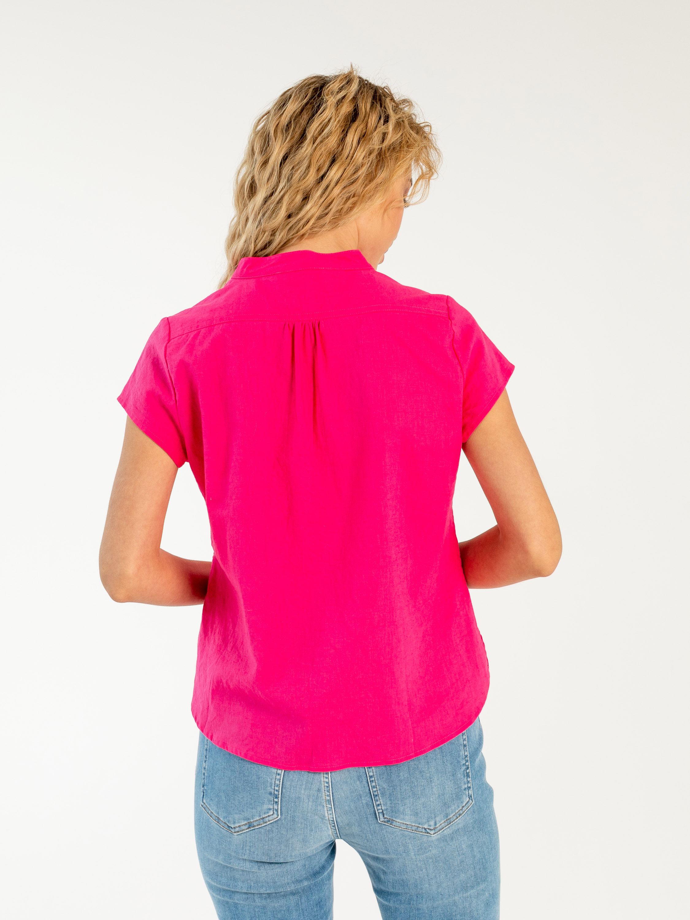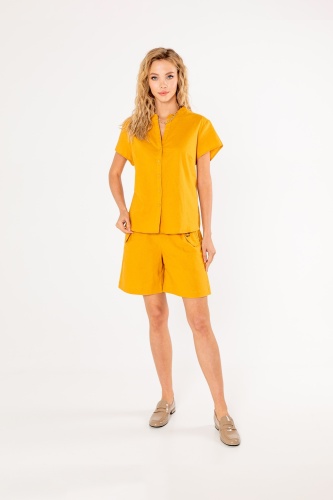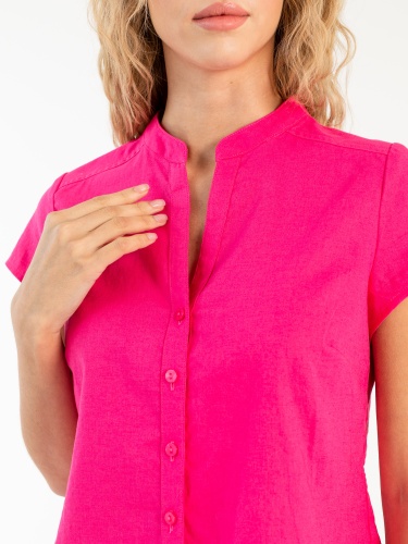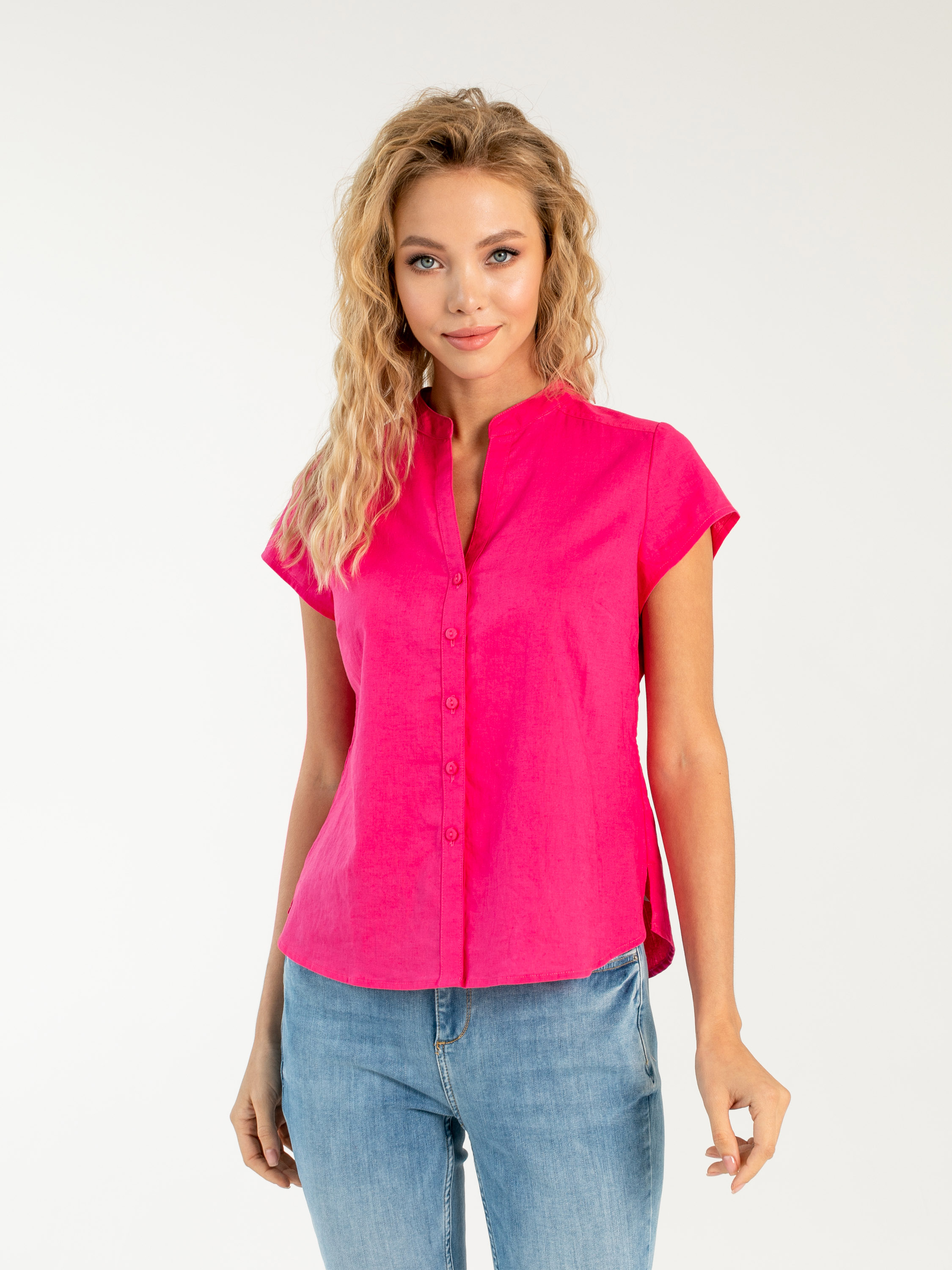 На сайте указаны российские размеры. Ткань: легкая ультрастильная блузка из смеси льна и хлопка. Дышащий материал, максимально приятный коже, позволяет носить изделие как летом, так и в межсезонье. Крой: свободный силуэт блузки и короткий рукав – максимум движения и комфорта для женщины, живущей активной жизнью. Изысканный V-образный вырез подчеркивает красоту шеи, не обнажая зону декольте, что позволяет создавать элегантные, но яркие образы на каждый день. Вытачки выгодно подчеркивают линию груди и добавляют женственности. Отделка: тонкая планка с рядом лаконичных пуговиц гармонизирует силуэт, создавая вертикаль. Блузка представлена в двух ультрастильных цветах – хитах последних сезонов. Блузка отлично сочетается как с летним ассортиментом – легкими юбками, шортами, свободными брюками и светлыми жакетами, так и с более теплыми вещами – уютным трикотажем и модным денимом из коллекции Stern.