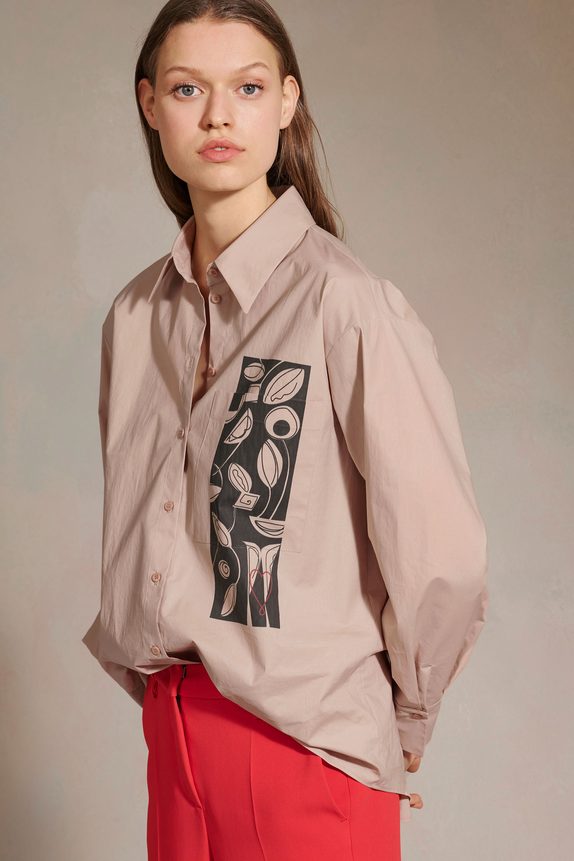 Hемецкий бренд. На сайте указаны Российские размеры. Классическая рубашка из элегантного эластичного поплина с планкой со сплошной пуговицей, закругленным низом и крупной складкой сзади. Крупный мотивный принт на нагрудном кармане расставляет акценты.