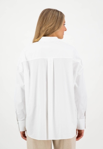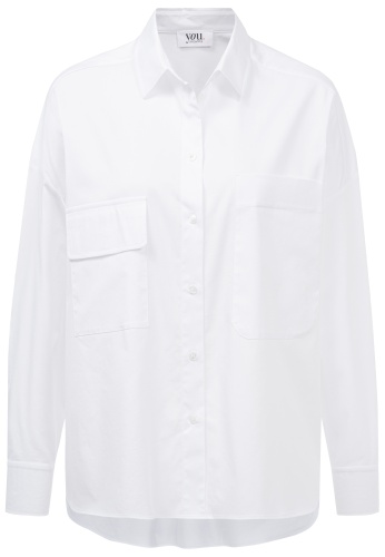 На сайте указаны российские размеры. Повседневная блуза оверсайз с нагрудными карманами. Благодаря свободному крою, широким плечам и складкам на спине блузка выглядит особенно непринужденно. Накладные нагрудные карманы ослабляют классический модный образ и завершают спортивный стиль, создавая современный образ. Наша модель ростом 177 см. Измерения для 44 размера: Окружность груди: 138 см Бедра: 141 см Длина по спинке: 72 см. Длина рукава: 49 см.