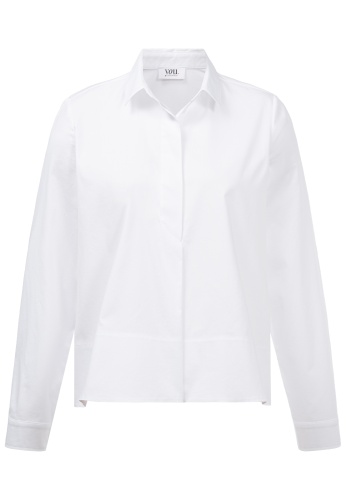 На сайте указаны российские размеры. Белая блузка с длинными рукавами и планкой на потайных пуговицах. Эта блузка имеет спортивный вид, современный и современный благодаря планке с потайными пуговицами, воротнику рубашки и разделительному шву, но и ее качество: экологически чистые материалы, произведенные в Европе. Повседневную блузу можно комбинировать несложно и универсально, поэтому она идеальна для повседневного образа. Рост модели 177 см Измерения для 46 размера: Окружность груди: 104 см Бедра: 125 см Длина спинки: 60 см. Длина рукава: 61 см.