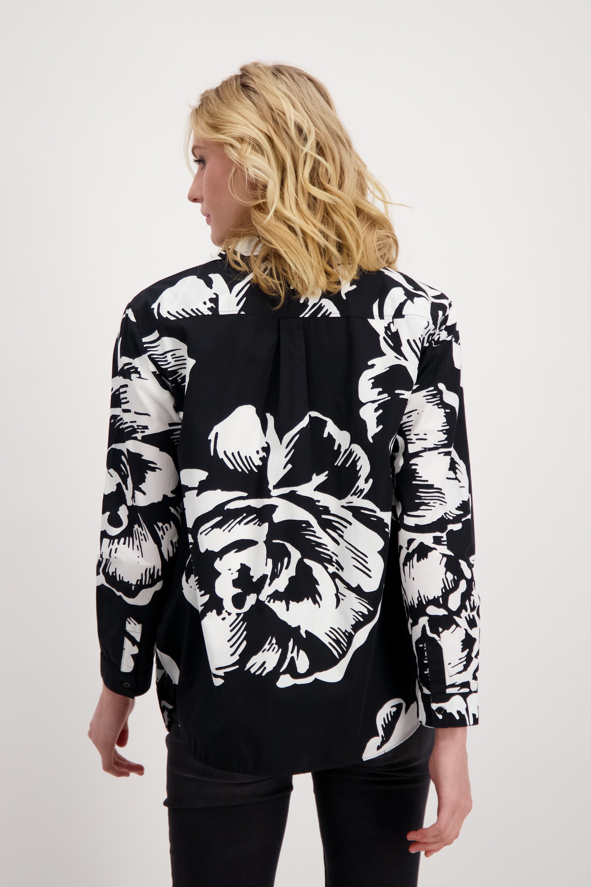 На сайте указаны российские размеры. С модной блузкой-рубашкой от monari у вас будет отличный наряд на любой случай. В классическом крое с отложным воротником, длинными рукавами с манжетами на пуговицах, планкой на потайных пуговицах и двумя накладными карманами на груди вас вдохновит модель с закругленным низом. Стильные цветочные узоры снова в моде в этом сезоне и придают каждому образу что-то свое. Совет по стилю: наденьте расстегнутую поверх современной футболки с лакированными надписями и темных джинсов. Модель ростом 179 см. Длина спины 44 размера 73 см.
