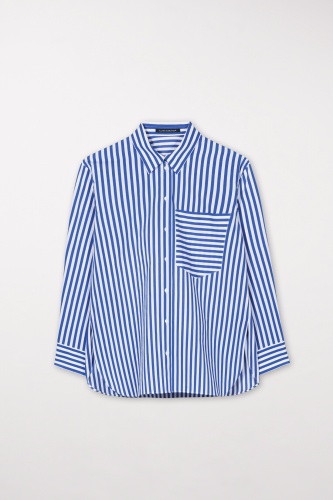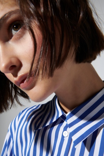 На сайте указаны российские размеры. Летняя рубашка из смесового хлопка с эксклюзивным и простым узором в полоску Positano, а также закругленным низом с боковыми разрезами. Спереди большой накладной нагрудный карман. Рост модели 178 см