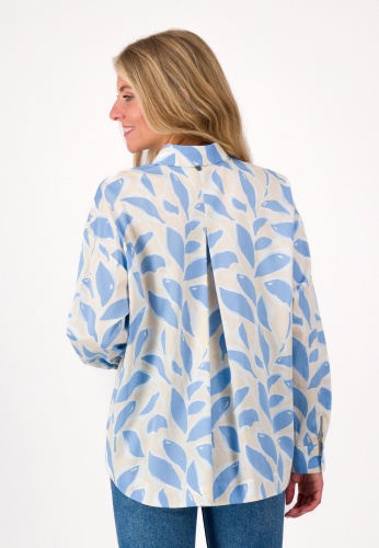 На сайте указаны российские размеры. Блуза-рубашка с выразительным сплошным принтом в ботаническом стиле — must-have сезона. Стильный принт придает блузке-рубашке оверсайз креативный вид. Обработка задней складки без кокетки также обеспечивает удобную полноту и непринужденный вид. Длина по спинке: 68 см. Рост модели: 177 см.