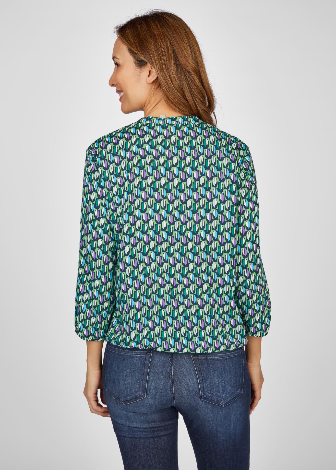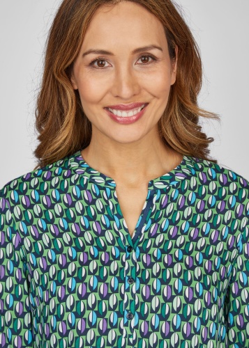 Блузка с минималистичным узором по всей поверхности – стильный и универсальный предмет гардероба. Изготовленная из высококачественной 100% вискозы, она обеспечивает ощущение комфорта и легкую, струящуюся текстуру. Блузка имеет небольшой воротник-стойку и элегантную планку на пуговицах, что придает ей классический и привлекательный вид. Эластичный низ обеспечивает удобную посадку и подчеркивает талию. Эластичные манжеты на рукавах придают изделию изысканность и позволяют персонализировать модель. Эта блузка с тонким узором по всей поверхности придаст любому образу утонченную элегантность.