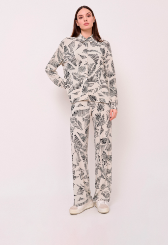 Детали: застежка пуговицы, вырез горловины отложной воротничок, рукава длинные, покрой рубашечный, рисунок абстракция. Длина по спинке: 74 см.