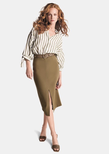 Мы предпочитаем классику и любим добавлять к ней особые штрихи, как вы можете видеть здесь, в этой мягкой, яркой льняной блузке в модном стиле блузки-рубашки. Широкий крой, слегка мешковатые рукава с модной тесьмой. Лен придает изделию естественный характер, а полоски добавляют шика.
