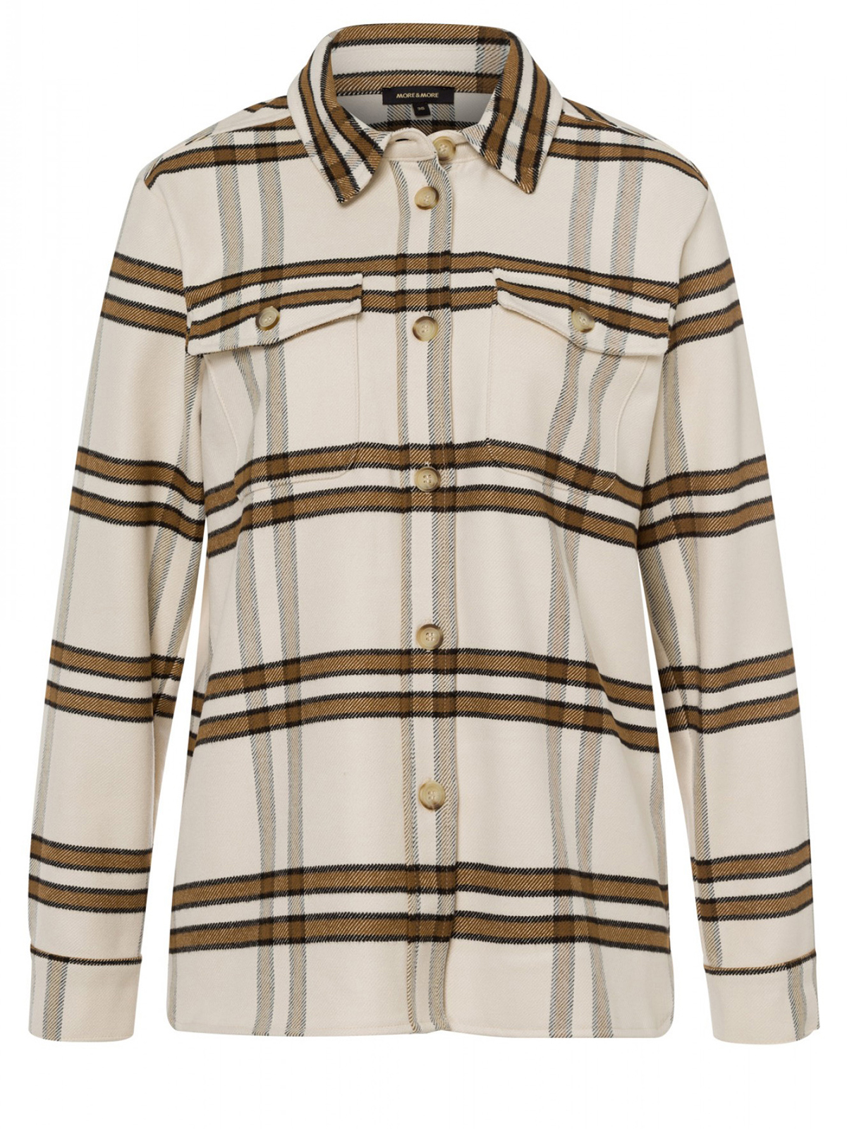 Рубашка в крупную клетку предпочтительно носить с водолазкой или рубашкой и узкими брюками или джинсами. свободная, прямая форма; планка с пуговицами и отложной поротник; длинные рукава с манжетами на пуговицах; два нагрудных кармана с клапанами и пуговицами; закругленный подол рубашки; Длина по размеру 42 (российский) = 72 см