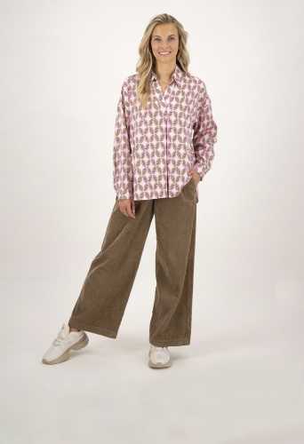 На сайте указаны российские размеры. Креативная блузка-рубашка модного кроя оверсайз. Яркие цвета и крой — выразительный графический принт убедительно сочетается со стильным кроем оверсайз. Этому способствует двухъярусный подол, удлиненный сзади, и боковые разрезы. Складки на спине с одной стороны обеспечивают легкое и свободное ниспадание рубашки. Классический воротник рубашки переходит в V-образный вырез, за которым следует складка на одной стороне, что также подчеркивает легкость блузки. Наша модель ростом 177 см. Измерения для размера 44: Окружность груди: 158 см Бедра: 153 см Длина по спинке: 72 см. Длина рукава: 50 см