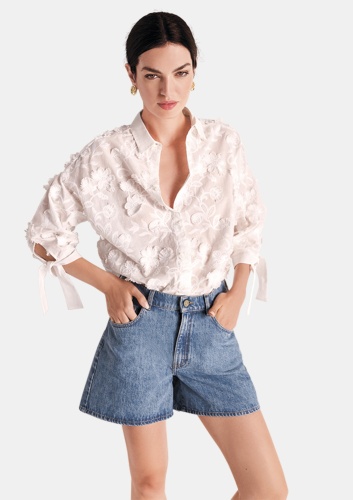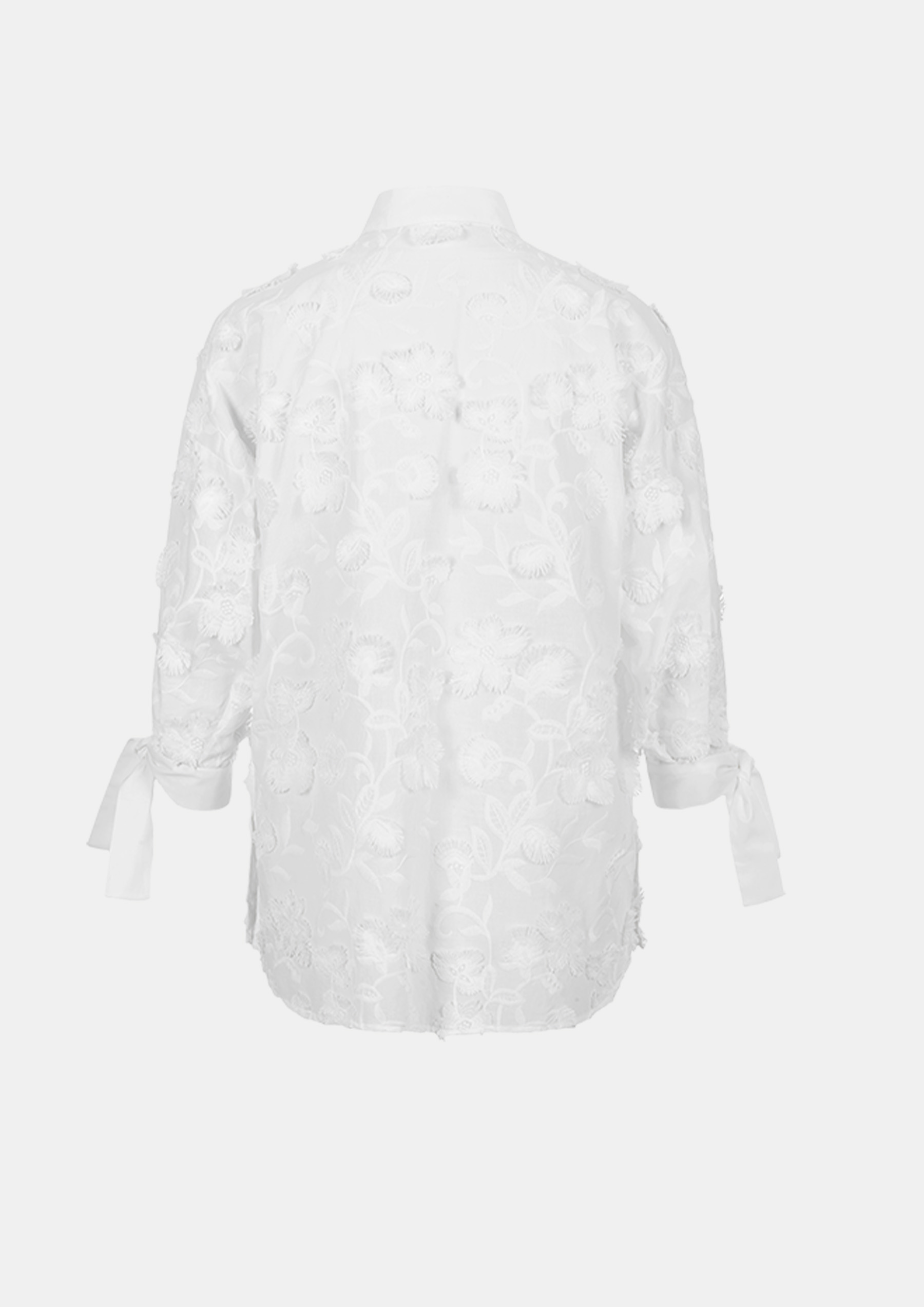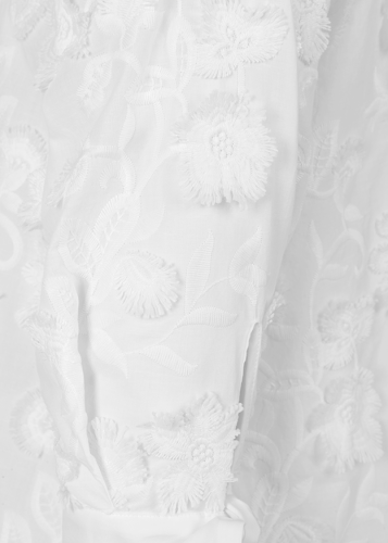 Повседневный стиль рубашки сочетается с очаровательным цветочным декором и модными деталями на рукавах. Замысловатая вышивка цветов, листьев и завитков делает эту блузку из тонкого хлопкового батиста настоящей приманкой для глаз.