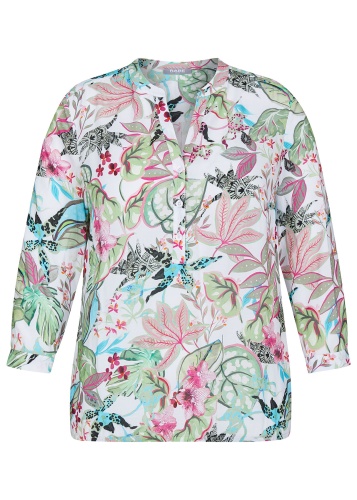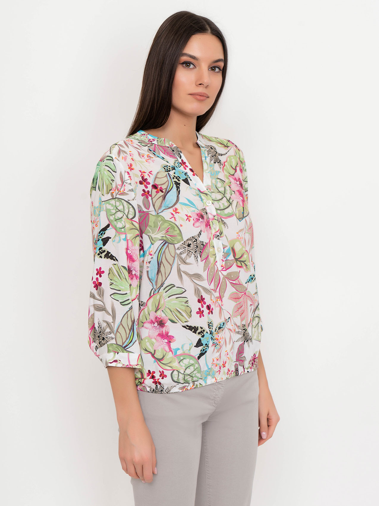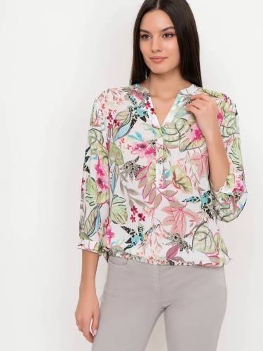Блуза с цветочным принтом создает весеннее настроение. Вискозный материал очень приятен к телу и обеспечивает максимальный комфорт. Прямой покрой гарантирует удобство движений, а рукава 3/4 придают непринужденный вид. Это универсальная и женственная модель, которая преобразит ваш гардероб!