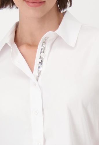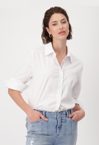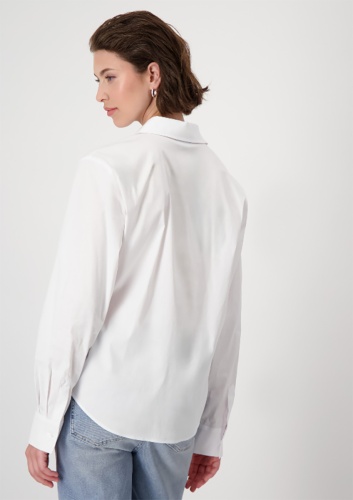 Модная блузка Monari из эластичного блузочного материала. Модель с рубашечным воротником и удлиненным изогнутым краем.