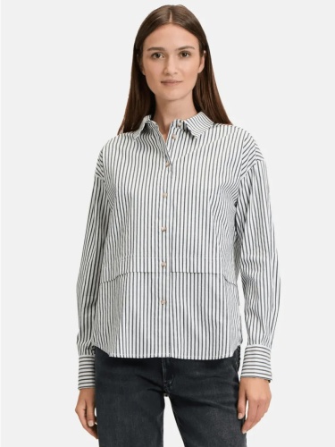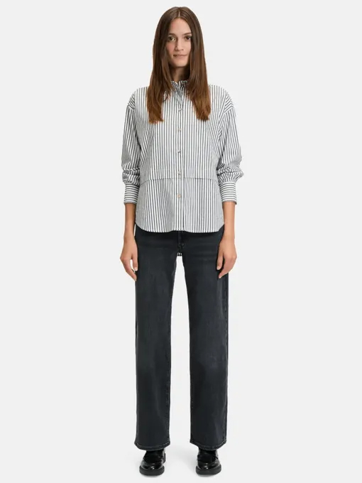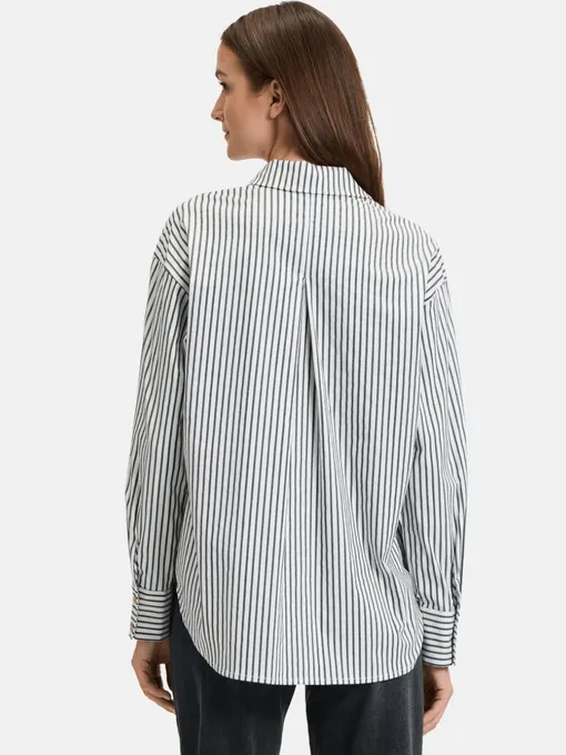 Повседневная рубашка в полоску прямого силуэта. Длинный рукав с манжетами. Застежка на пуговицы.