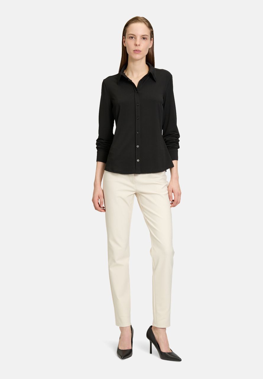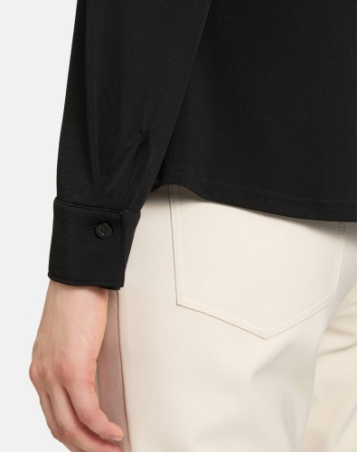 Блузка-рубашка из мягкого трикотажа простого кроя. Благодаря своему повседневному крою, классическому рубашечному воротнику и застежке на пуговицы по всей длине, эта модель излучает непринужденную элегантность. Длинные рукава придают изделию неподвластный времени шарм и делают его идеальным для стильных повседневных образов или неформальных офисных нарядов.