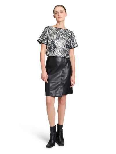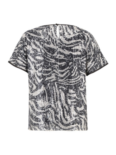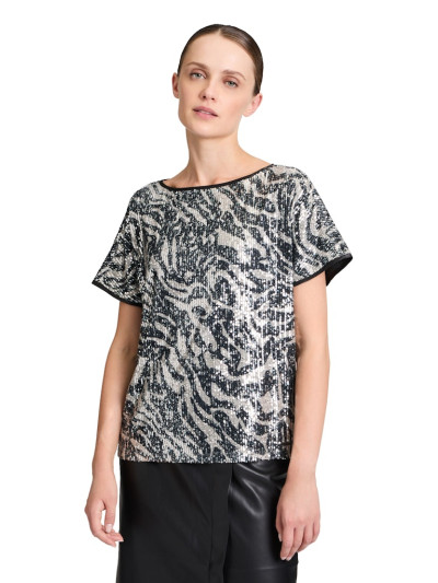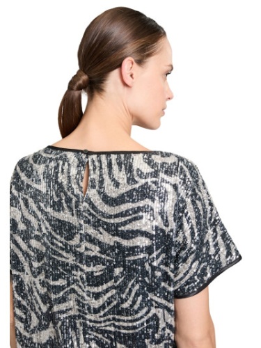 Блузка с принтом и короткими рукавами, расшитая пайетками.