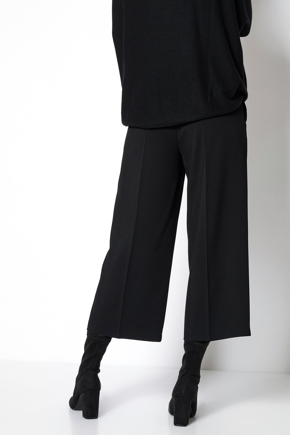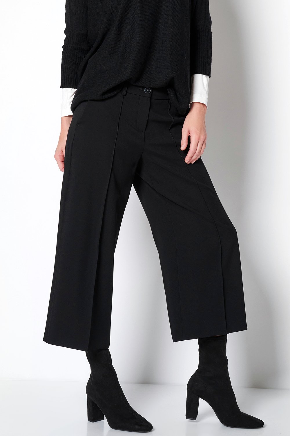Брюки-кюлоты - невероятно трендовая модель, которую можно носить как на прогулку, так и в офис с нестрогим дресс-кодом! Удобная средняя посадка. Укороченная длина брюк позволяет подчеркнуть модную обувь. Стрелки визуально вытягивают силуэт.