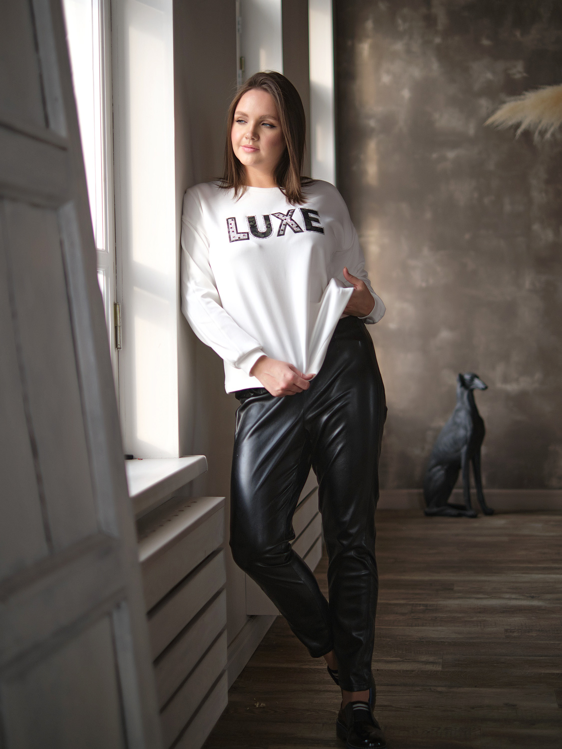 Черные кожаные брюки прямого кроя – универсальный атрибут гардероба современной женщины, с которым можно составить огромное количество образов.