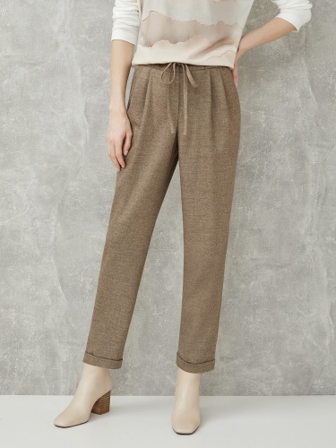 Однотонные брюки прямого кроя с отворотами. Эластичный пояс с кулиской обеспечивает комфортное ношение. Боковые врезные карманы. Брюки отлично сочетать с рубашкой из комплекта или надевать вместе с джемпером или блейзером.