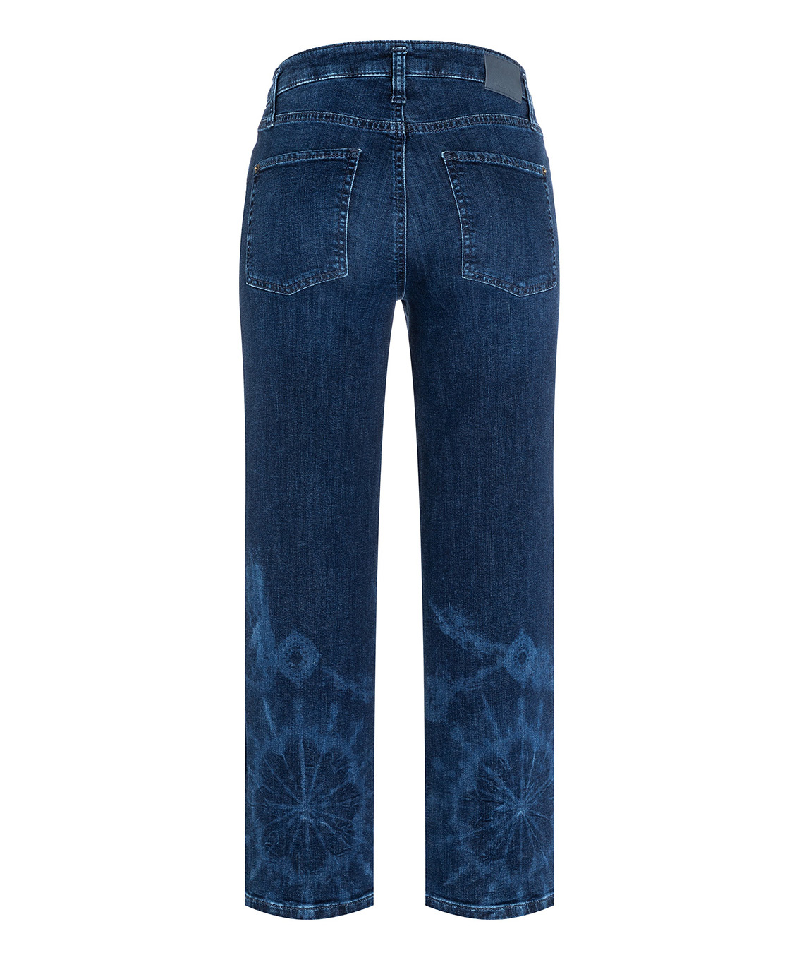 Широкие джинсы - неоспоримый тренд сезона! Джинсы средней посадки с потертостями в стиле тай-дай. Укороченная длина позволяет подчеркнуть модную обувь. Приятный к телу материал из хлопковой смеси обеспечивает комфорт. Эта модель - отличная пара для любого варианта верха, будь то облегающая водолазка или легкий топ.