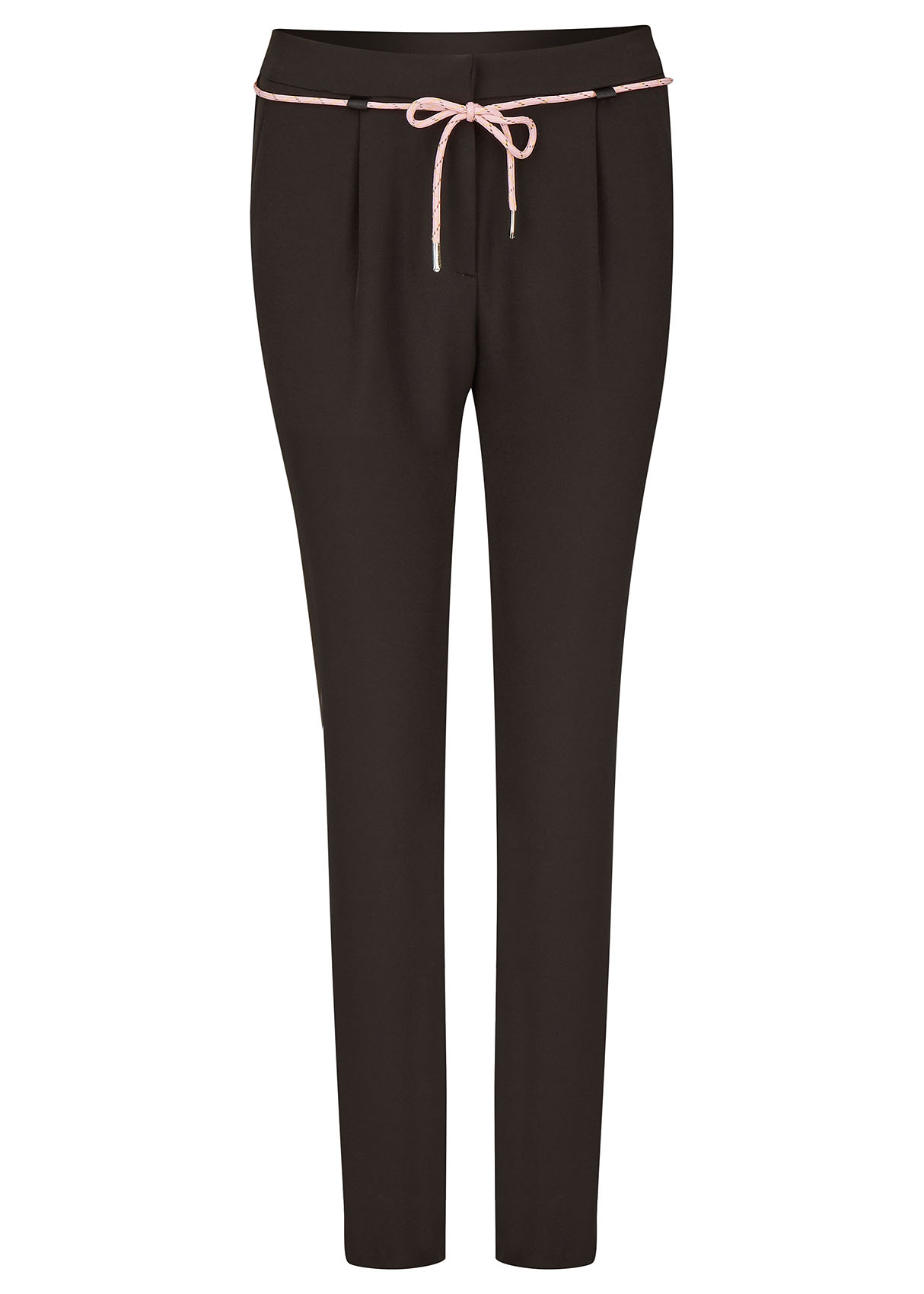 Трикотажные брюки с защипами. Средняя посадка. Декоративные ленты по бокам, декоративный шнурок на поясе. Удобные брюки в спортивном стиле создают демократичный образ.