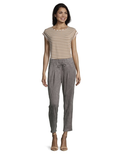 Прямые брюки с защипами позволяют создать непринужденный образ. Укороченная длина брюк подчеркивает модную обвуь. Эластичный пояс с кулиской. Эта стильная модель отлично смотрится с любым вариантом верха и обуви!