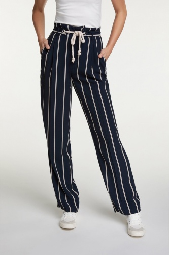 Для тех, кто скучает по морю! Модные широкие брюки средней посадки. Пояс с декоративным шнуром. Карманы. Трендовый принт в полоску визуально вытягивает силуэт. Вискозный материал приятен к телу и обеспечивает комфорт. Эти брюки - великолепная основа для множества стильных образов.