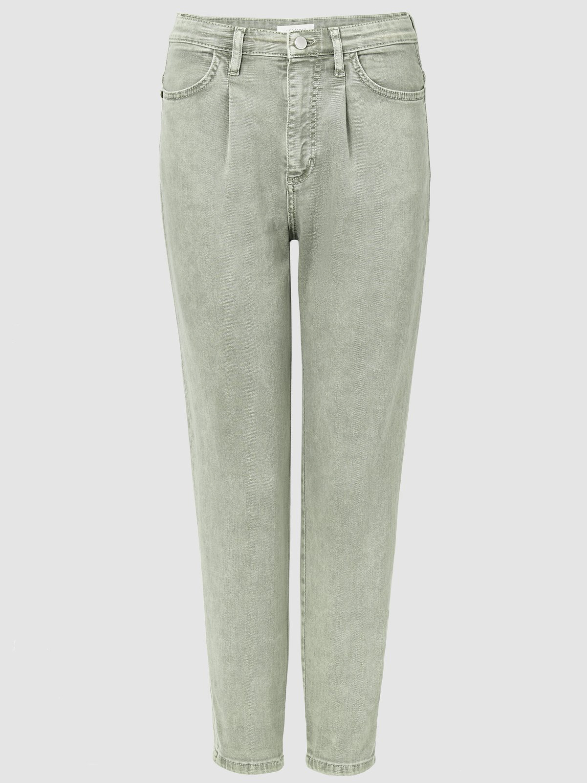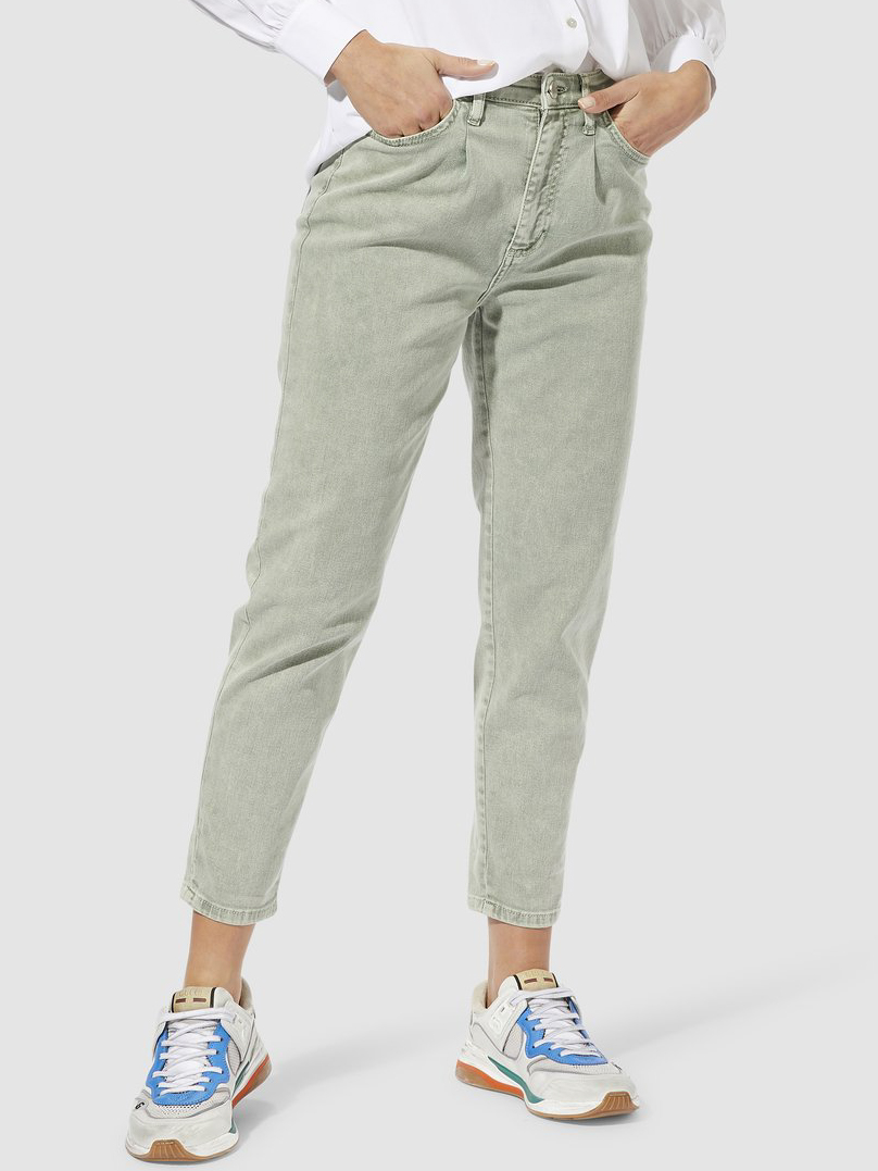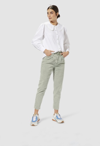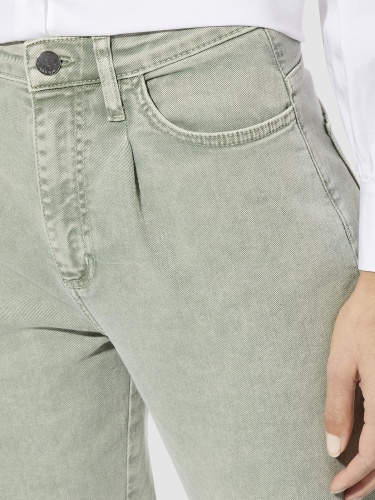 Укороченные джинсы в актуальной оливковой расцветке. Свободный крой с высоким поясом подчеркнет вашу талию. Пояс со шлевками, застежка на скрытую молнию и пуговицу. Внутренние передние и задние накладные карманы.