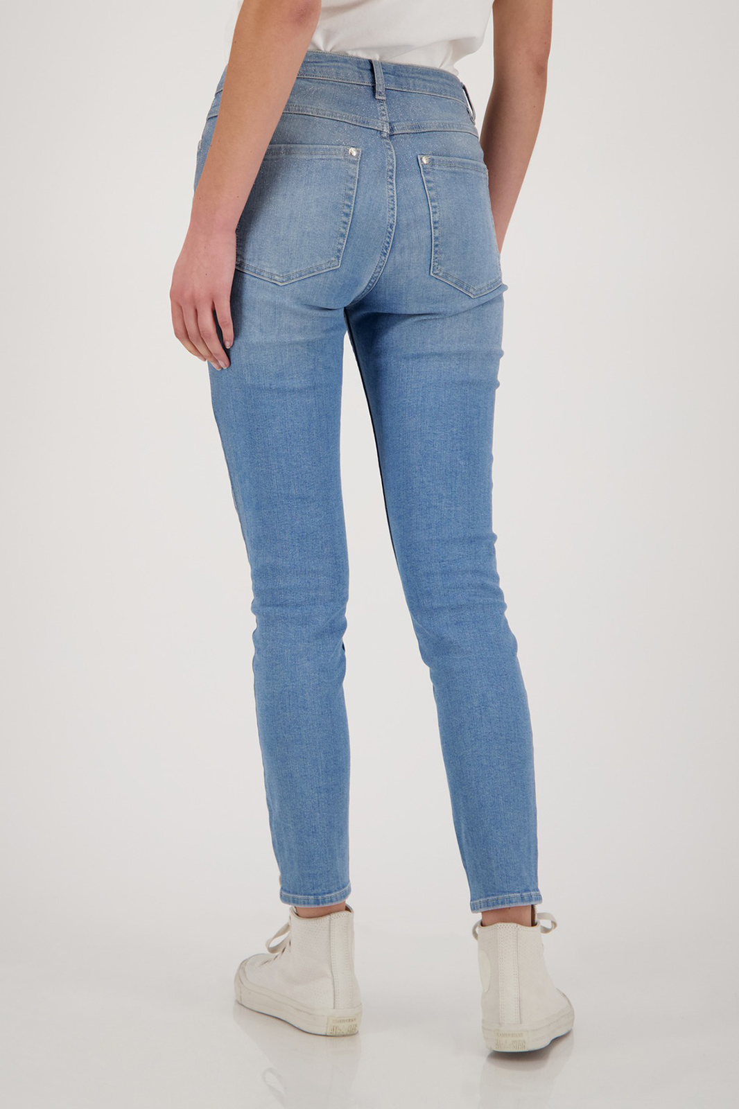 На сайте указаны Российские размеры. Голубые зауженные джинсы – базовый элемент гардероба любой современной девушки. Длина 7/8 оголяет щиколотку и визуально удлиняет силуэт. Средняя посадка, пояс со шлевками. Застежка на скрытую молнию и пуговицу. Внутренние передние и задние накладные карманы.