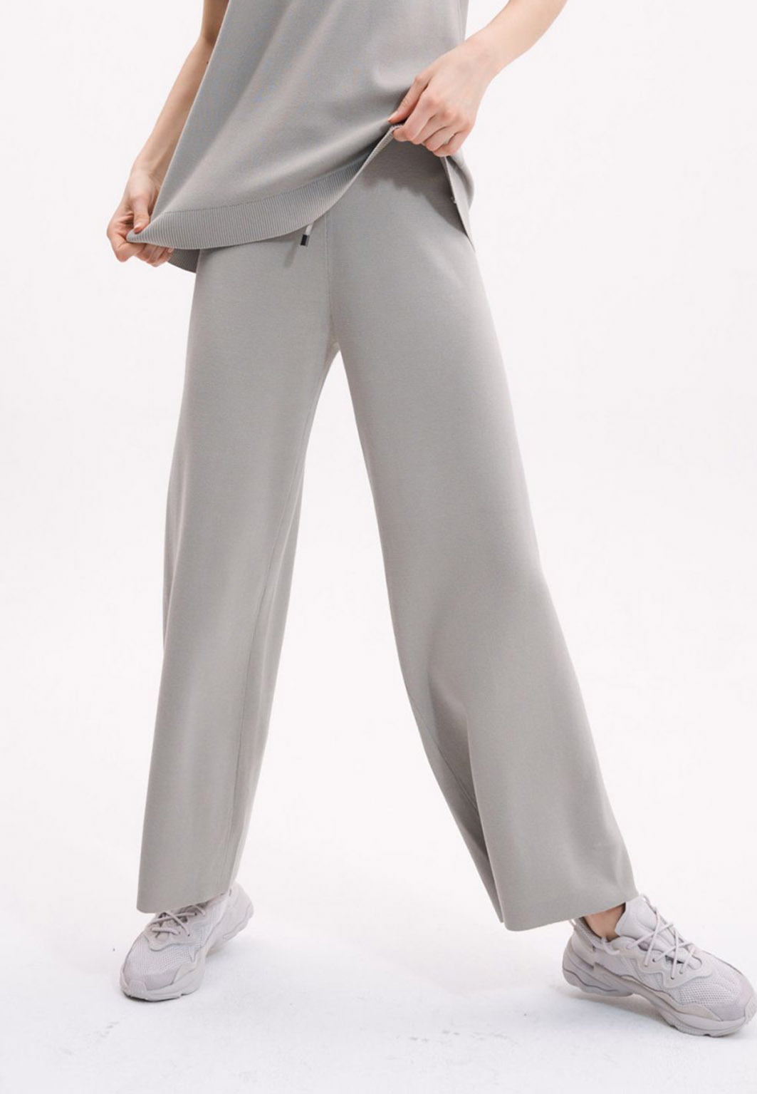 Длинные, свободные, широкие трикотажные брюки. Идеальны как для прогулок, так и джоггинга. Без бокового шва и карманов