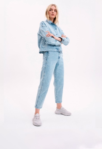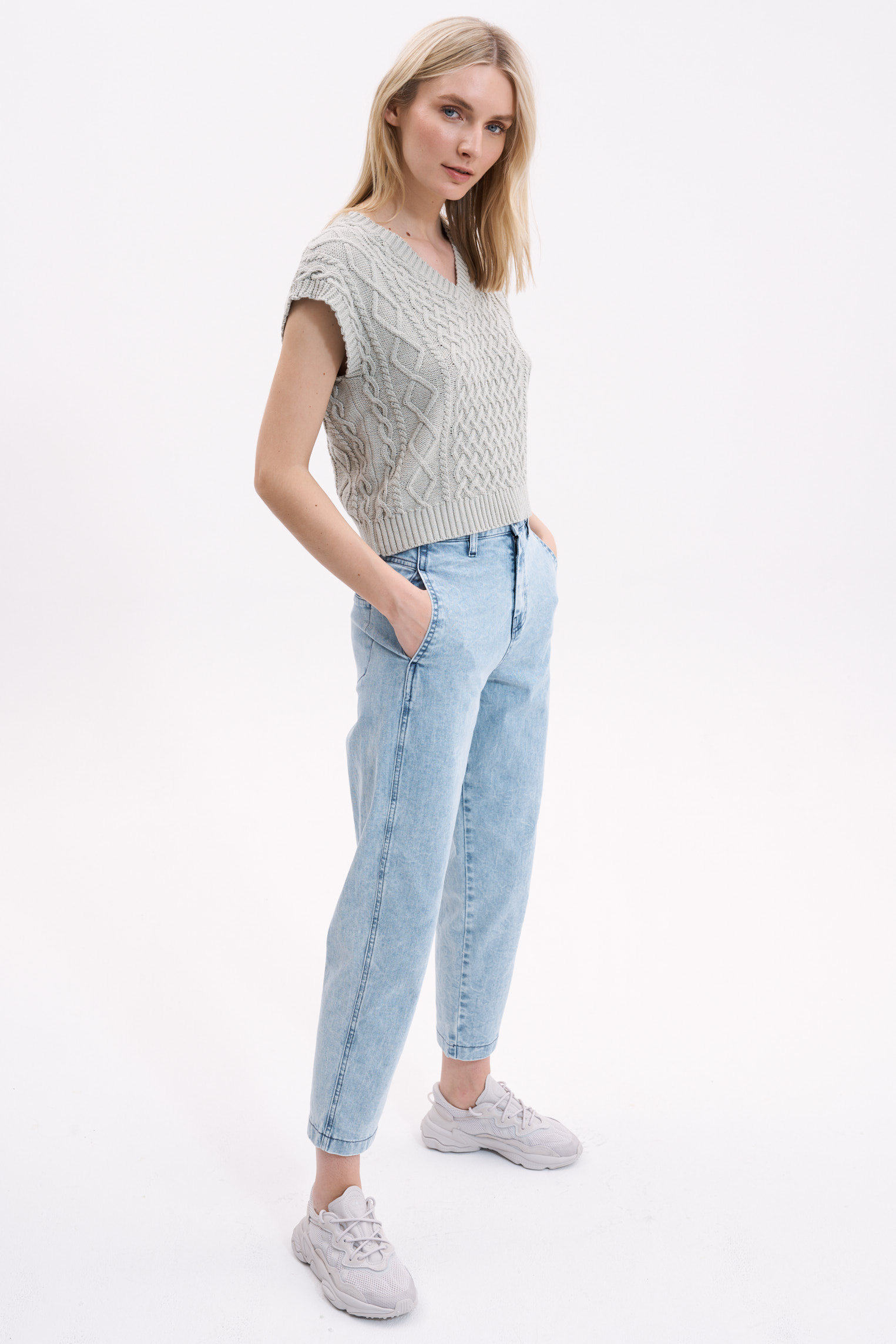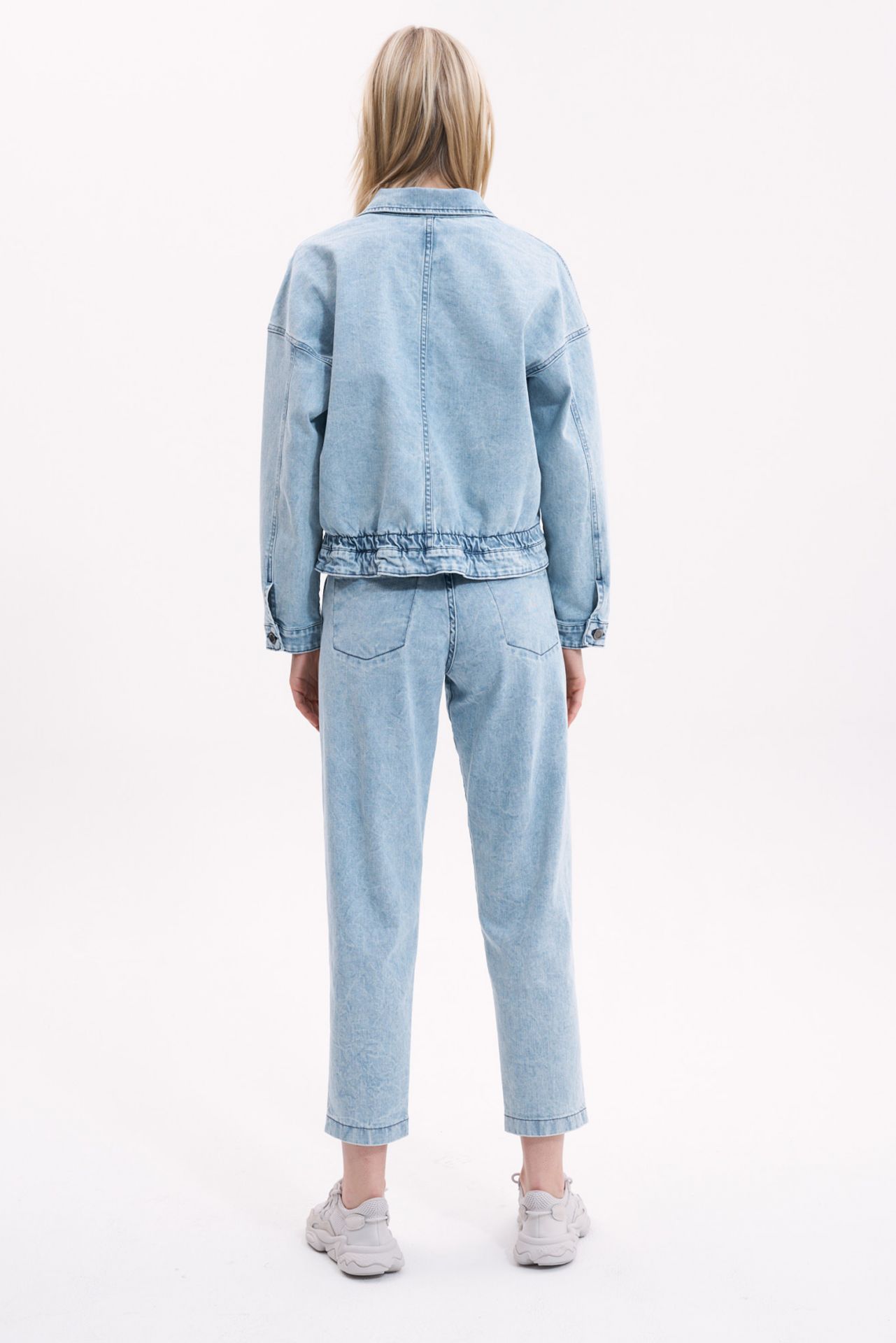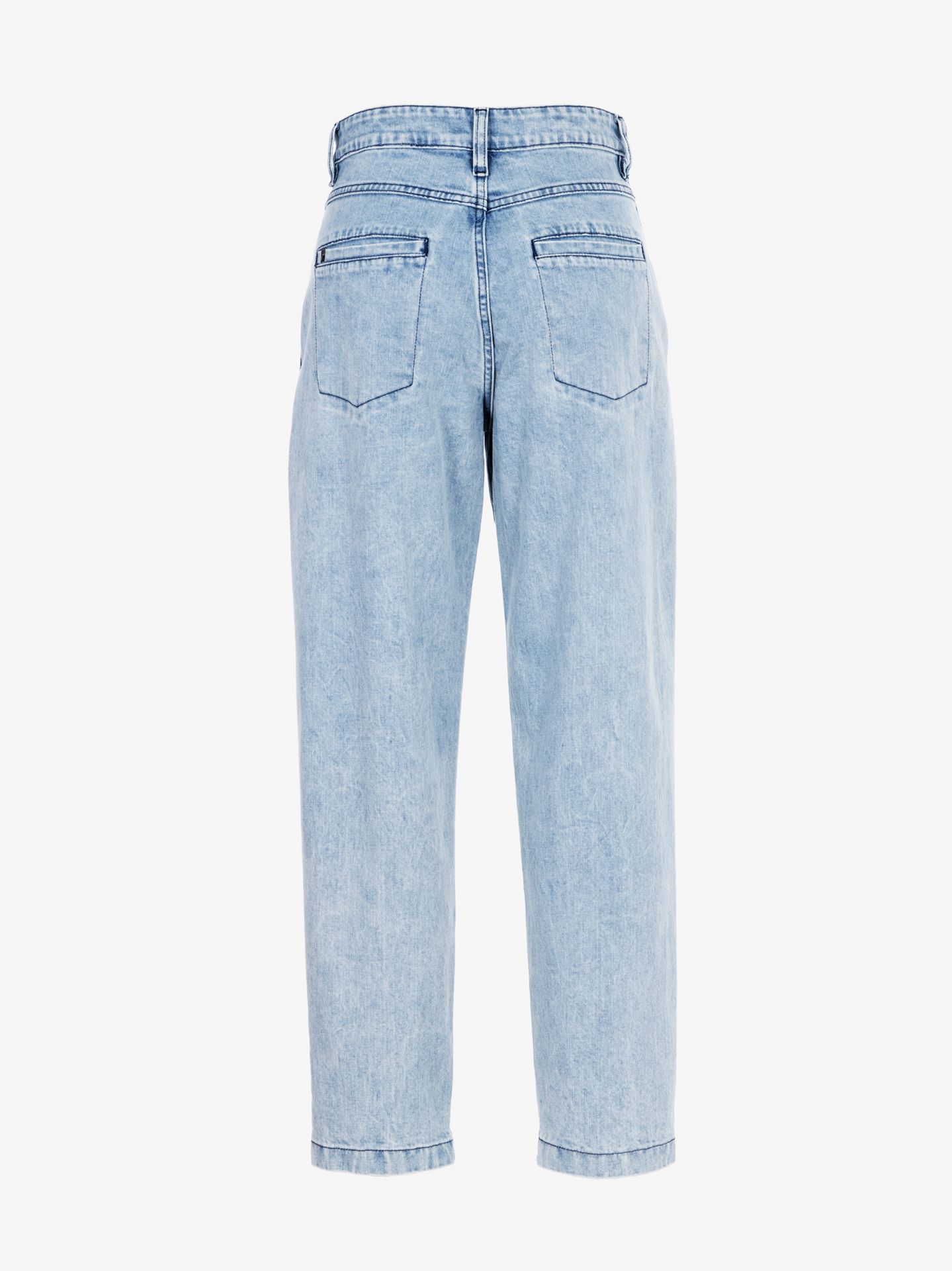 Джинсы из отбеленного делима в стиле Чинос. Задние карманы с зажимом с логотипом UNQ.