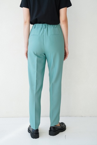 На сайте указаны российские размеры. Ткань: смесовая ткань средней плотности (68% полиэстер, 28% вискоза, 4% эластан) Крой: классическая модель прямого силуэта со стрелками, изящными защипами и удобными функциональными карманами. Средняя посадка гармонизирует силуэт, подчеркивает талию и скрывает возможные недостатки в области живота и бедер. Отделка: стрелка визуально удлиняет силуэт, делая его более подтянутым. Застегиваются на оригинальную пуговицу с жемчужным сиянием. Сзади два прорезных кармана. Имеют шлевки, что позволяет дополнять образ ремнем.