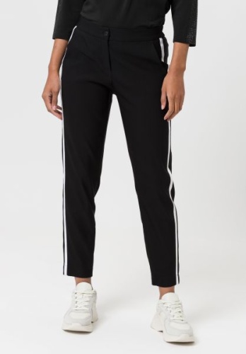 На сайте указаны российские размеры. Спортивные брюки с эластичным поясом с пуговицей, потайной молнией и боковыми карманами. Крой создает красивый силуэт. Контрастные полоски по бокам расставляют модные акценты.