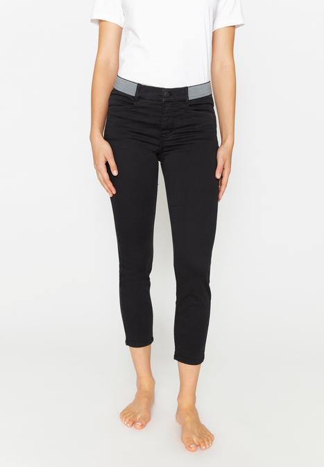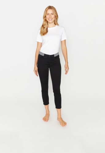 На сайте указаны российские размеры. Джинсы зауженного кроя с контрастной отделкой. Облегающий крой и укороченные штанины идеально подчеркивают силуэт. Благодаря модному дизайну и однотонному стилю джинсы идеально сочетаются с необычными узорами и яркими цветами. Кроме того, эти джинсы особенно приятны для кожи из-за высококачественной смеси хлопка. Эластичный материал и частично эластичный пояс также делают их удобными и обеспечивают оптимальную свободу движений.