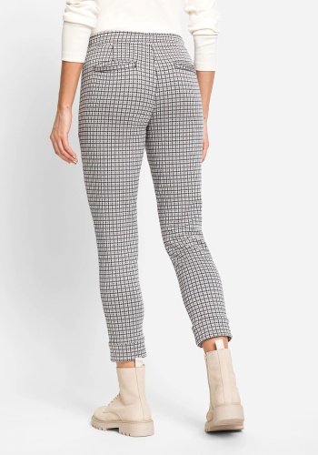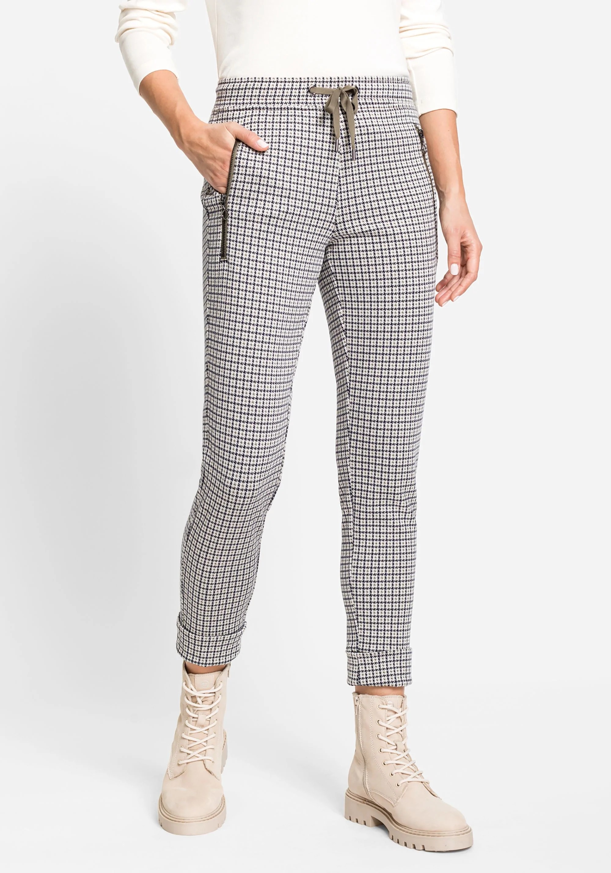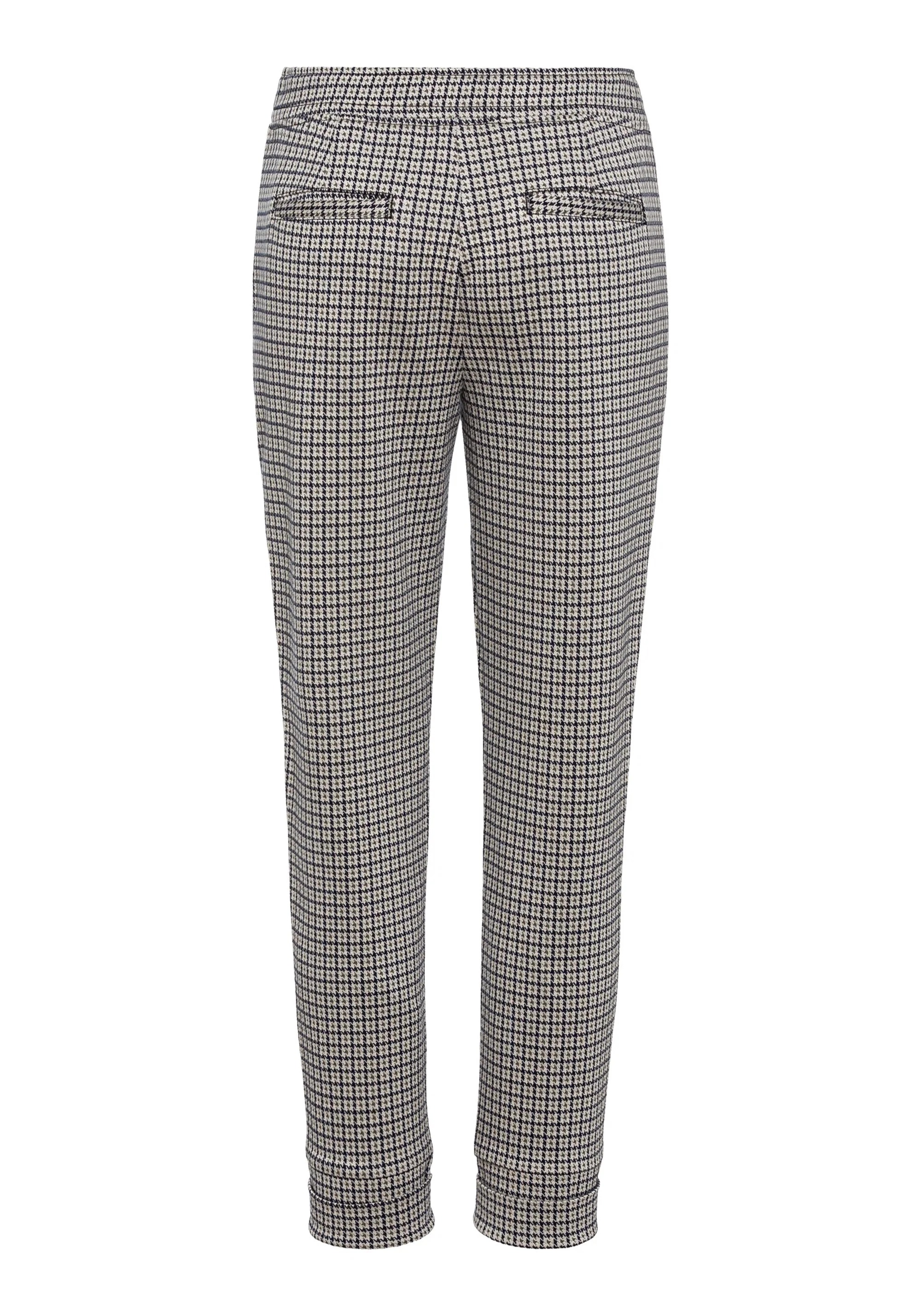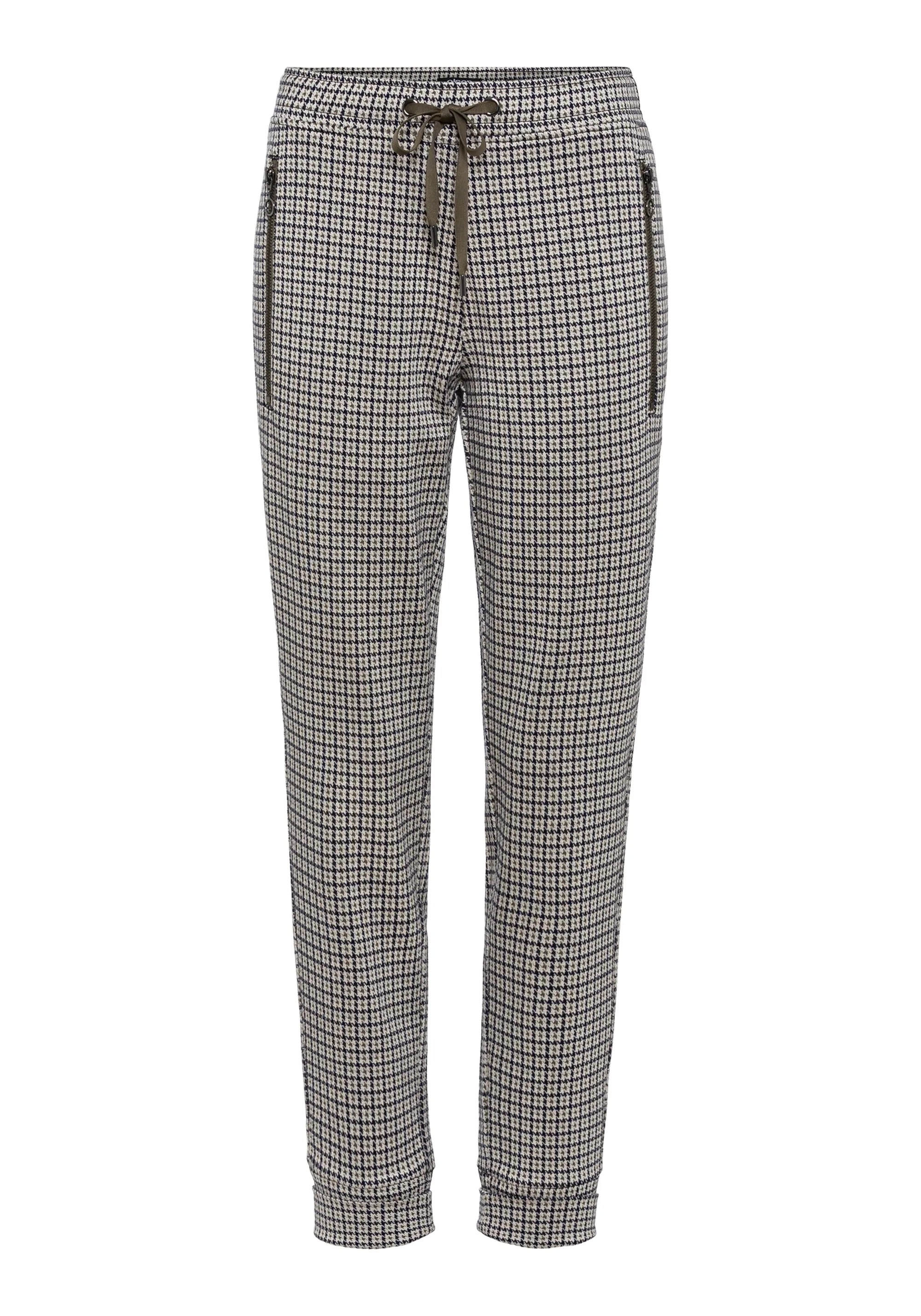 На сайте указаны российские размеры. Брюки средней посадки в ломаную клетку, регулируемые тесьмой на талии. Боковые карманы на молнии и прорезные карманы сзади. Слегка зауженная штанина с резинкой. Длина: 72 см в 44 размере.