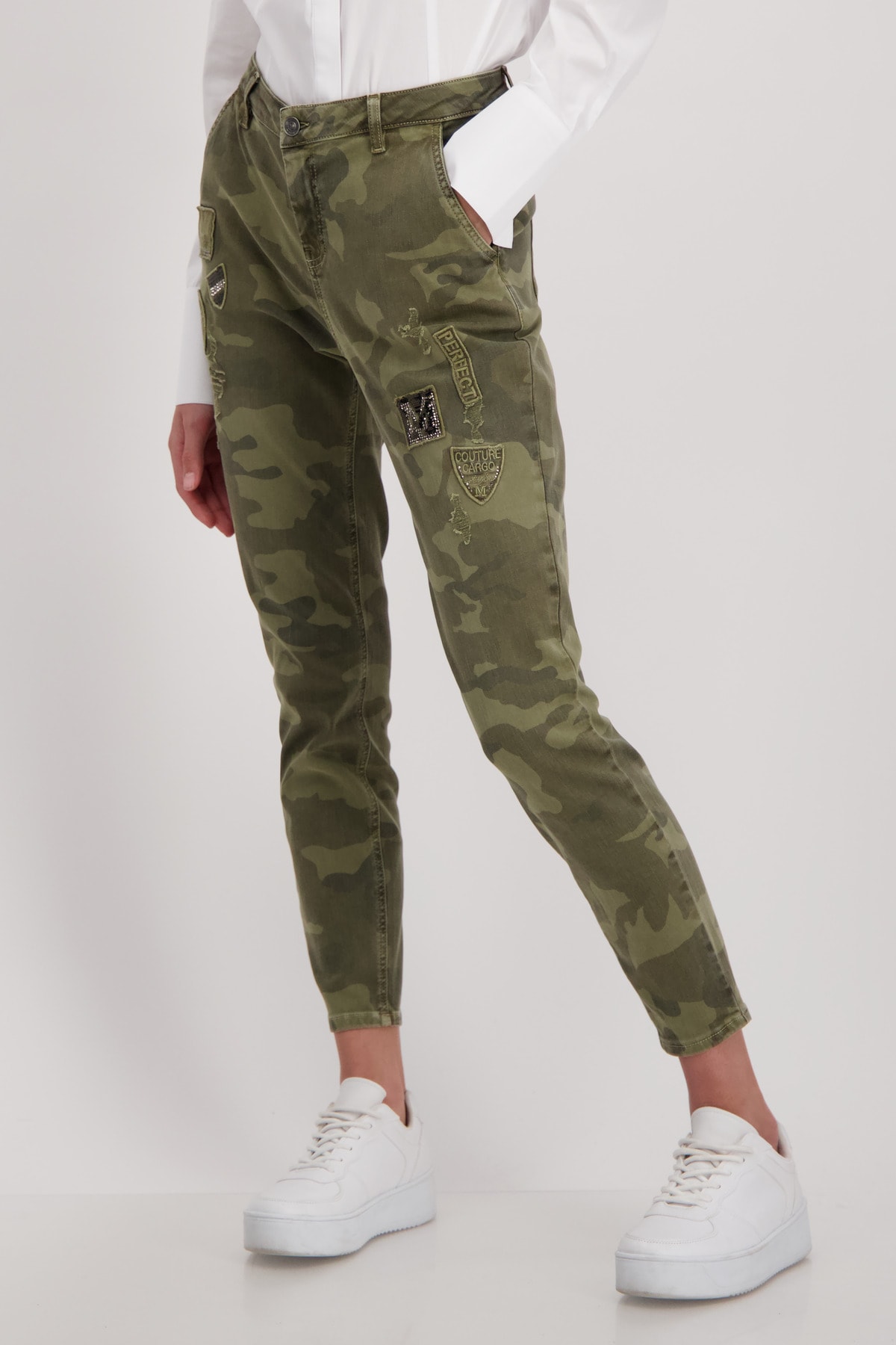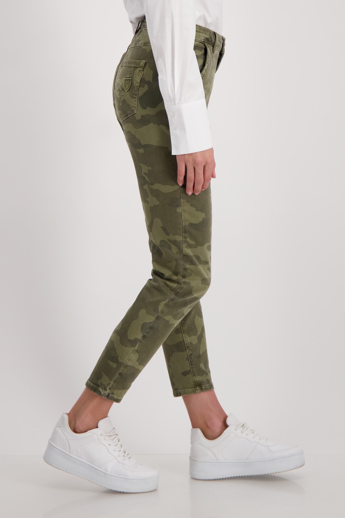 На сайте указаны российские размеры. Эти повседневные брюки-дудочки от monari — настоящее чудо сочетания модных стилей. Независимо от того, как вы хотите это комбинировать, вы всегда на высоте! Узкий крой с нормальной посадкой умело подчеркивает вашу женственность, а сплошной принт с камуфляжным рисунком и сверкающими стразами на заплатках спереди также создает прохладный гламурный стиль. Инвестируйте в неизменный фаворит и комбинируйте по своему усмотрению. Рост модели 176 см Длина по внутреннему шву 72 см во всех размерах.