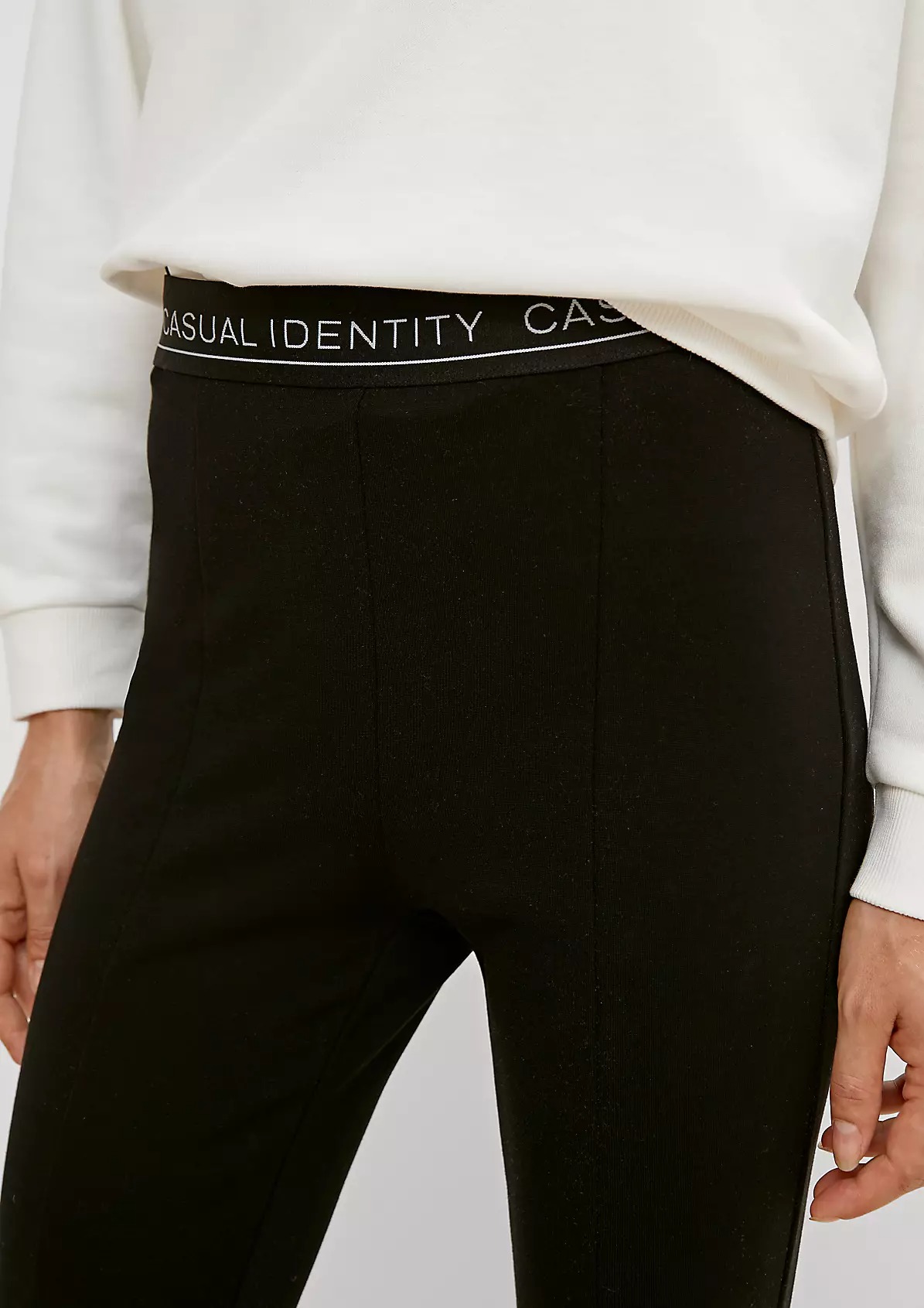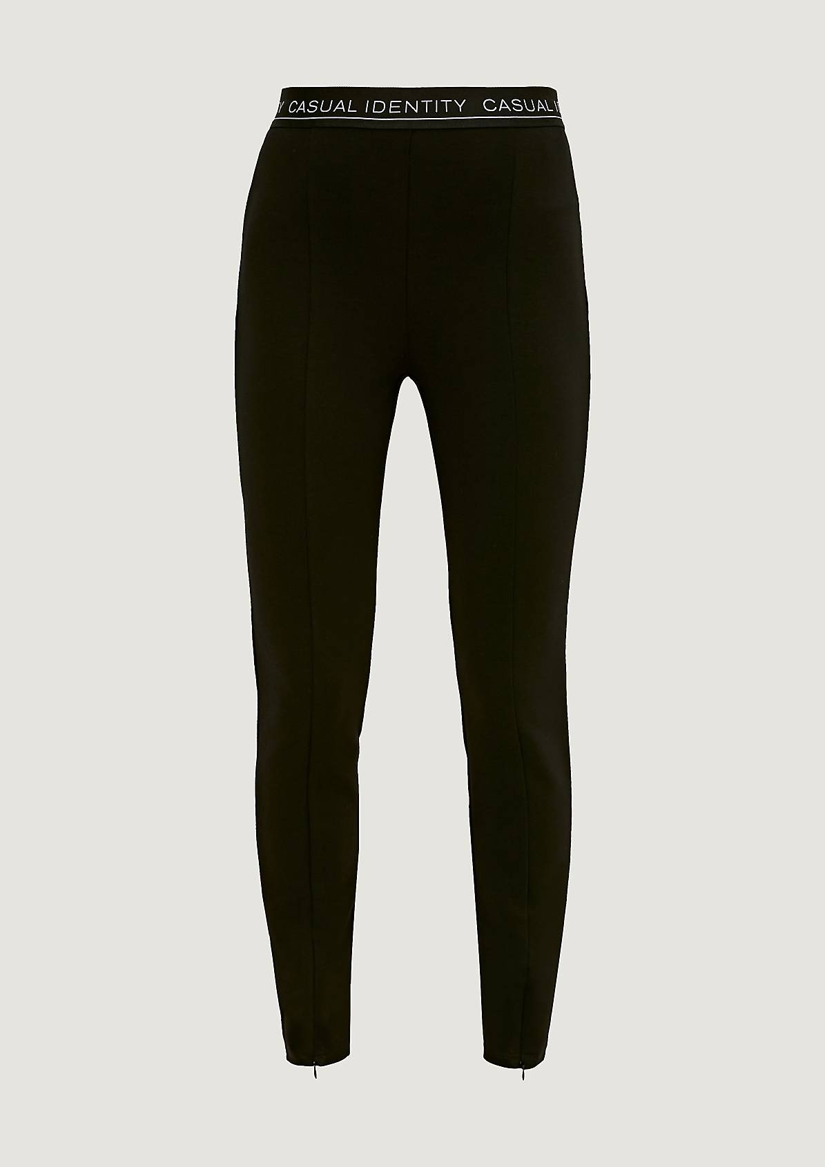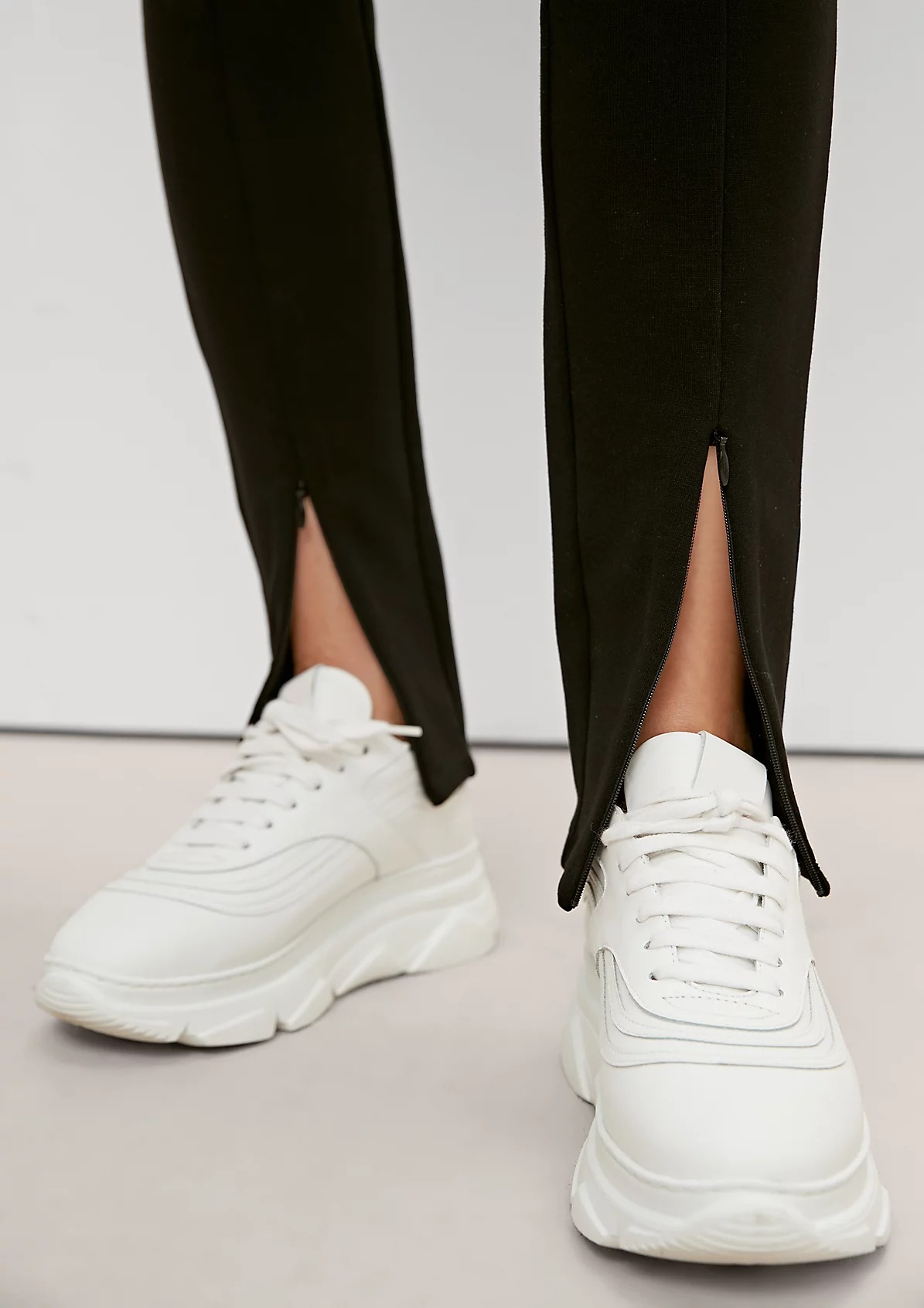 На сайте указаны российские размеры. Спортивные облегающие леггинсы с разрезами спереди. Эластичная резинка-пояс с надписью.